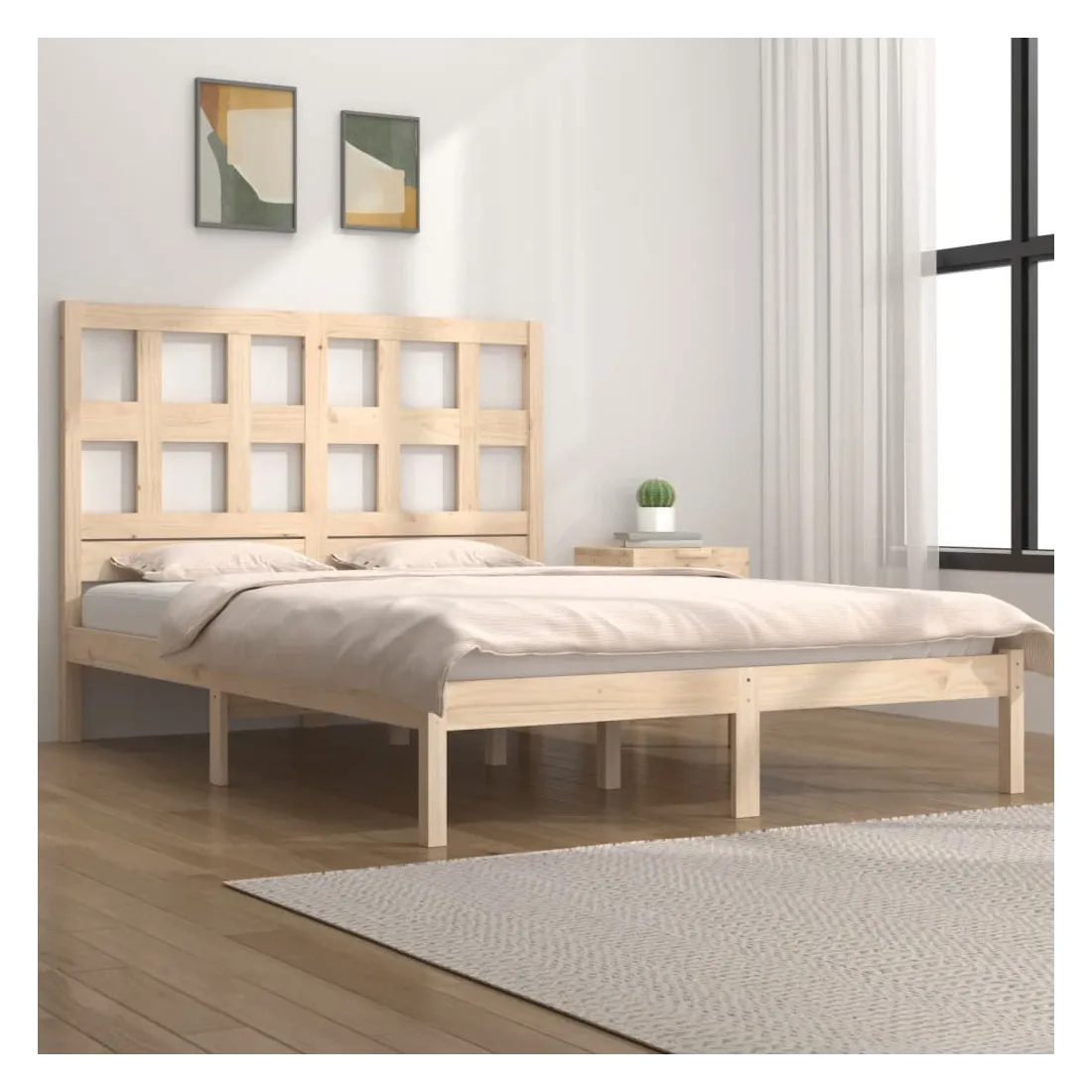 Prenez le chemin moderne vers votre chambre à coucher cool avec ce cadre de lit en bois ! Il constitue un supplément pratique et décoratif à votre intérieur. Bois de pin massif : le bois de pin massif est un matériau naturel magnifique. Le bois de pin a un grain droit et les nœuds donnent au matériau son aspect caractéristique et rustique.Cadre robuste et stable : le cadre en bois assure robustesse et stabilité.Tête de lit confortable : la tête de lit classique vous permet de vous reposer confortablement lorsque vous lisez ou regardez un film.Design accrocheur : la conception de la tête de lit est décorative et pratique. Il ajoute un style et un confort uniques. Bon à savoir :La livraison comprend uniquement un cadre de lit. Le matelas n'est pas inclus. Vous pouvez consulter notre boutique pour trouver les matelas assortis.Certaines pièces de tête de lit sont emballées dans les cartons du cadre de lit en raison du manque d’espace.Ce cadre de lit convient à un matelas mesurant 200 x 200 cm.