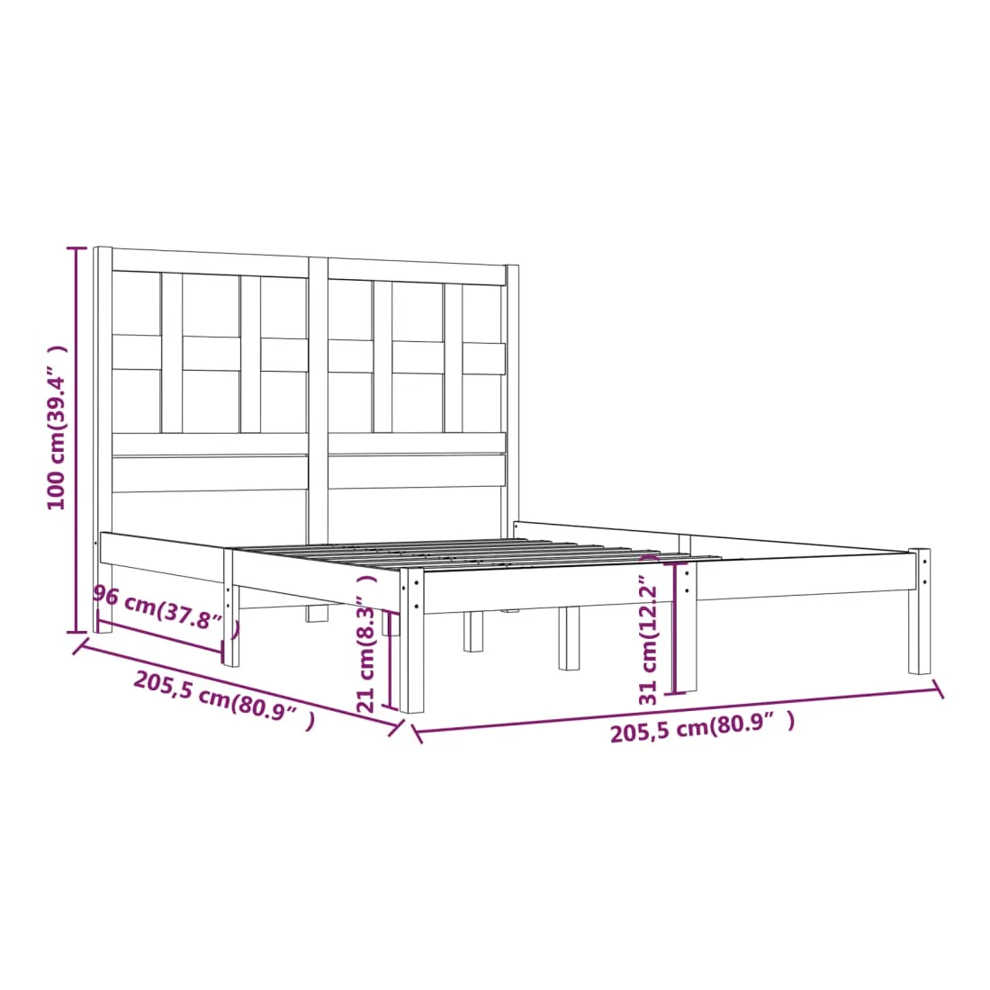 - Dimensions du cadre du lit : 205,5 x 205,5 x 31 cm (L x l x H)