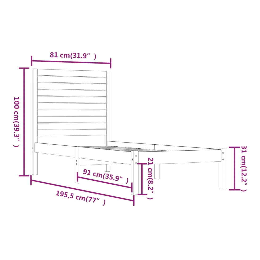 • Dimensions totales du cadre de lit : 195,5 x 81 x 100 cm (L x l x H)