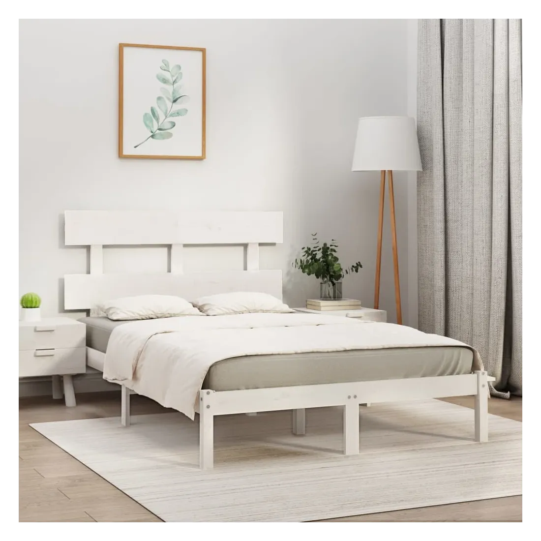 Avec un design simple mais intemporel, ce cadre de lit en bois sera un supplément vraiment pratique et décoratif à votre chambre à coucher. Bois de pin massif : le bois de pin massif est un matériau naturel magnifique. Le bois de pin a un grain droit et les nœuds donnent au matériau son aspect caractéristique et rustique.Cadre robuste et stable : les cadres de lit en bois en bois assurent robustesse et stabilité.Soutien confortable : la tête de lit vous offre un excellent soutien dorsal lorsque vous êtes assis au lit pour lire ou regarder des films.Design intemporel : la couleur et le design du sommier peuvent s'assortir facilement avec votre intérieur. Remarque :Le matelas n'est pas inclus. Vous pouvez consulter notre boutique pour trouver les matelas assortis.Ce cadre de lit convient à un matelas mesurant 200 x 200 cm.