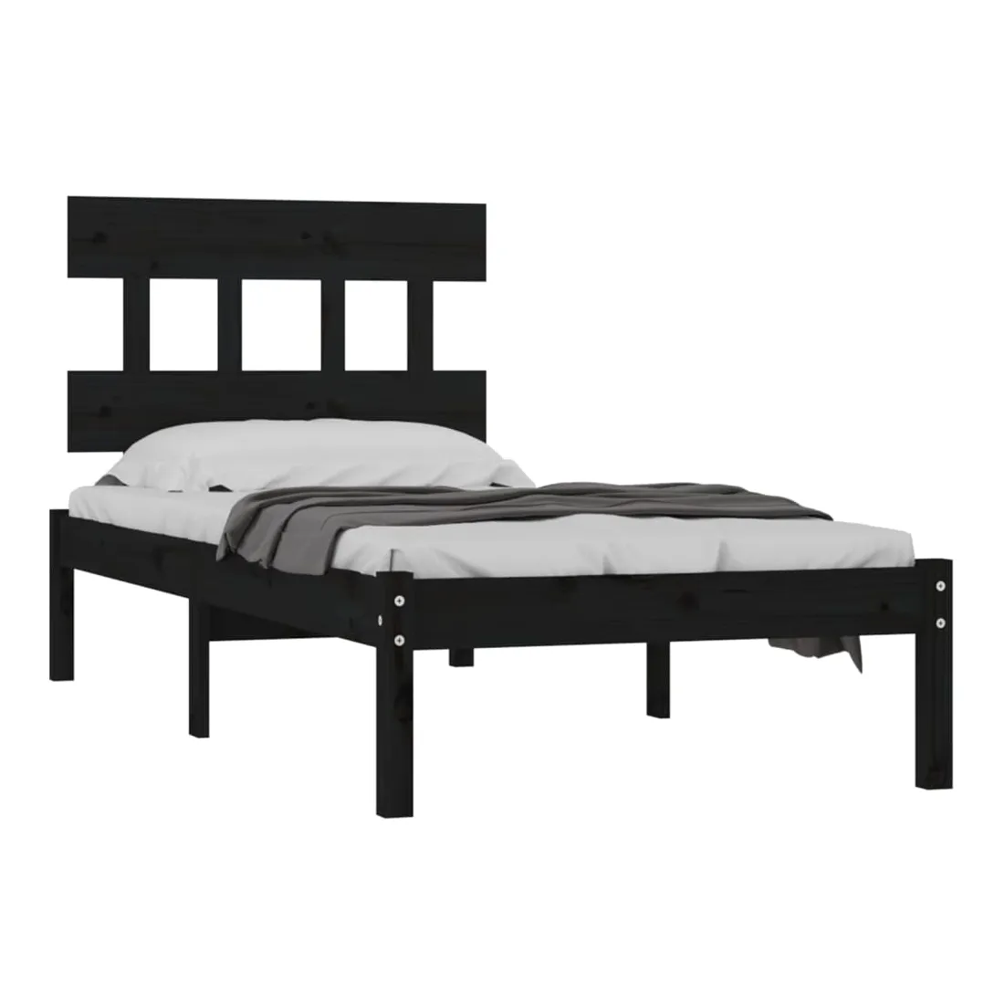 Cadre de lit sans matelas noir 75x190 cm bois massif
