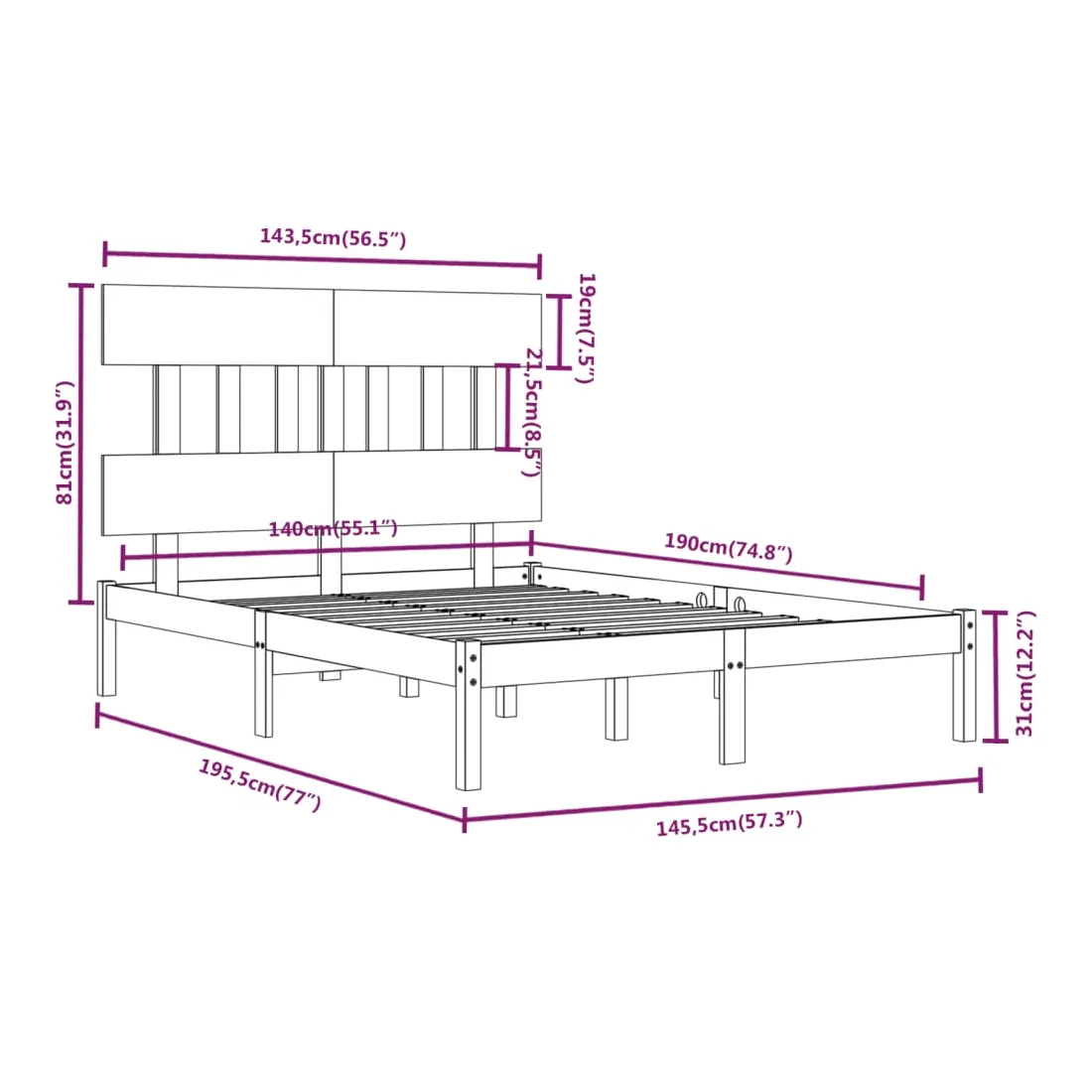 Avec un design simple mais intemporel, ce cadre de lit en bois sera un supplément vraiment pratique et décoratif à votre chambre à coucher. Bois de pin massif : le bois de pin massif est un matériau naturel magnifique. Le bois de pin a un grain droit et les nœuds donnent au matériau son aspect caractéristique et rustique.Cadre robuste et stable : les cadres de lit en bois en bois assurent robustesse et stabilité.Soutien confortable : la tête de lit vous offre un excellent soutien dorsal lorsque vous êtes assis au lit pour lire ou regarder des films.Design intemporel : la couleur et le design du sommier peuvent s'assortir facilement avec votre intérieur. Remarque :Le matelas n'est pas inclus. Vous pouvez consulter notre boutique pour trouver les matelas assortis.Ce cadre de lit convient à un matelas mesurant 140 x 190 cm.