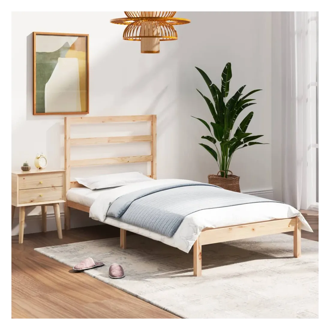 Prenez le chemin moderne vers votre chambre à coucher cool avec ce cadre de lit en bois ! Il constitue un supplément pratique et décoratif à votre intérieur. Matériau de première qualité : le bois de pin massif est un matériau naturel magnifique. Le bois de pin a un grain droit et les nœuds donnent au matériau son aspect caractéristique et rustique.Lattes robustes : les lattes de contreplaqué assurent une bonne répartition du poids, garantissant que le matelas reste en place à chaque torsion de votre corps pendant le sommeil.Tête de lit confortable : la tête de lit classique vous permet de vous reposer confortablement lorsque vous lisez ou regardez un film. Remarque :La livraison comprend uniquement un cadre de lit. Le matelas n'est pas inclus. Vous pouvez consulter notre boutique pour trouver les matelas assortis.Ce cadre de lit convient à un matelas mesurant 90 x 190 cm (simple).