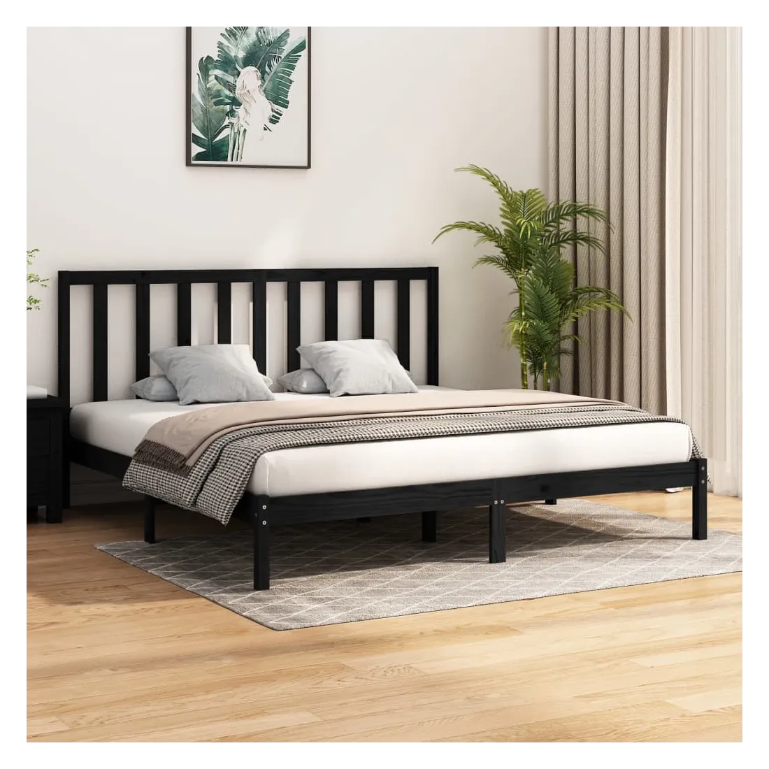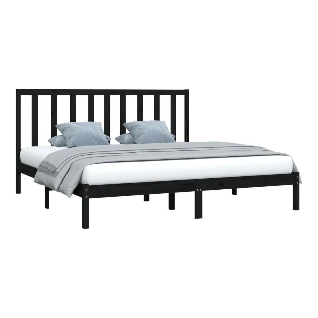 Cadre de lit sans matelas noir bois massif de pin 200x200 cm
