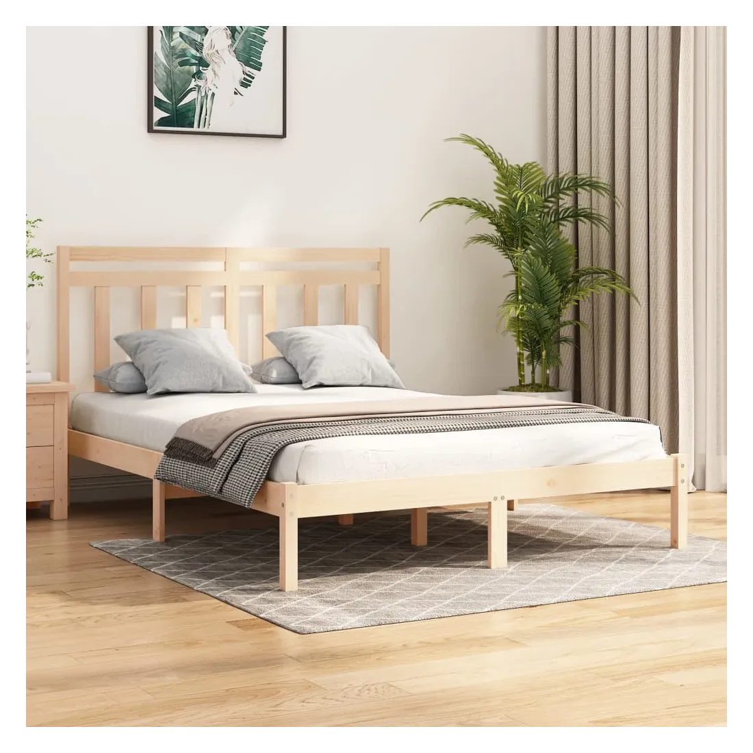 Ce cadre de lit classique, au design simple mais intemporel, est destiné à apporter une touche pratique et décorative à votre chambre à coucher. Bois de pin massif : le bois de pin massif est un matériau naturellement beau. Le bois de pin a un grain droit et les nœuds donnent au matériau son aspect caractéristique et rustique.Cadre robuste : les lattes de contreplaqué assurent une bonne répartition du poids, garantissant que le matelas reste en place à chaque torsion de votre corps pendant le sommeil.Expérience confortable : combinez ce cadre de lit et cette tête de lit en bois pour profiter pleinement de vos soirées. Qu'il s'agisse de vous reposer contre la tête de lit pour lire ou simplement faire un doux rêve, ce lit en bois saura répondre à vos besoins. Remarque :Le matelas n'est pas inclus. Vous pouvez consulter notre boutique pour trouver les matelas assortis.Ce cadre de lit convient à un matelas mesurant 120 x 200 cm.