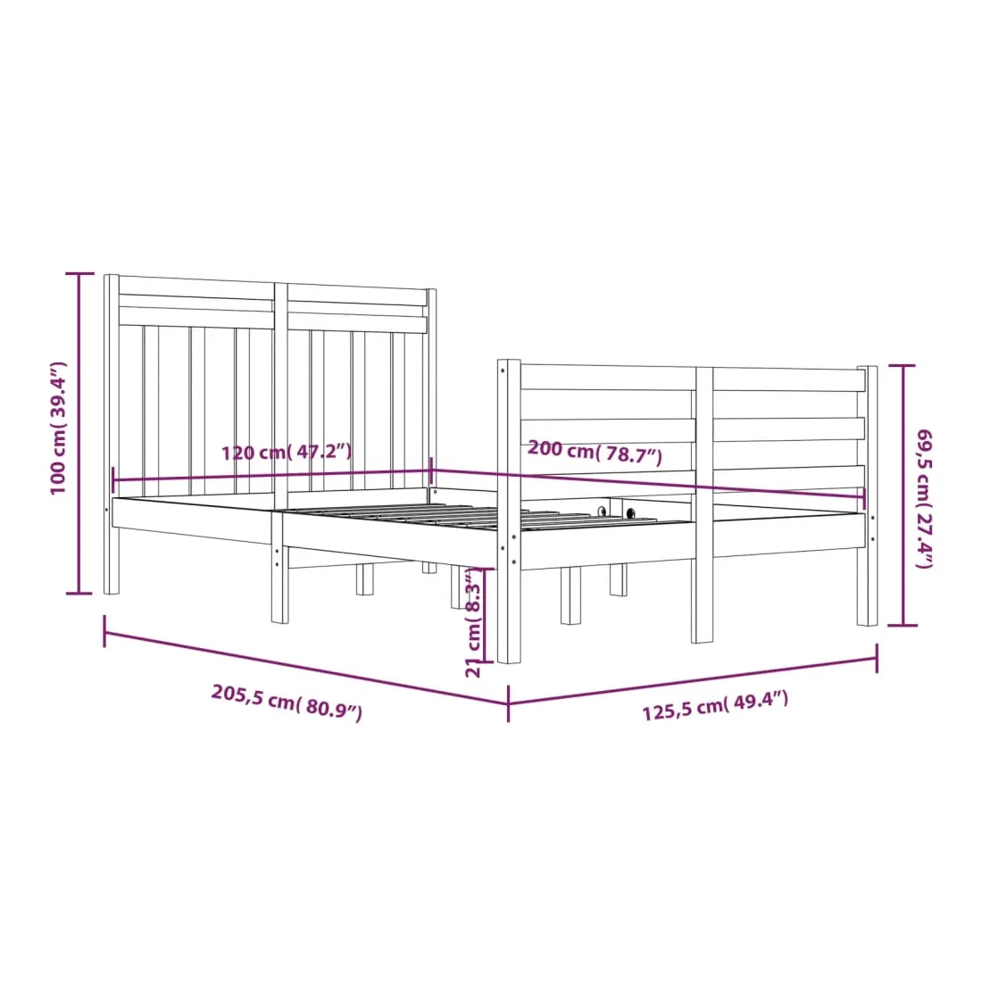 - Dimensions du cadre de lit : 205,5 x 125,5 x 69,5 cm (L x l x H)