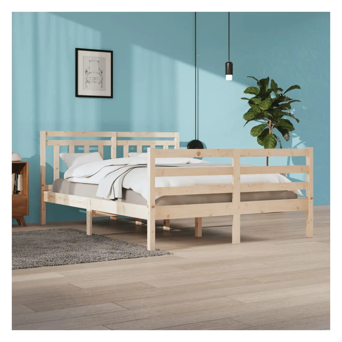 Ce cadre de lit classique, au design simple mais intemporel, est destiné à apporter une touche pratique et décorative à votre chambre à coucher. Bois de pin massif : le bois de pin massif est un matériau naturellement beau. Le bois de pin a un grain droit et les nœuds donnent au matériau son aspect caractéristique et rustique. Lattes de contreplaqué : les lattes de contreplaqué assurent une bonne répartition du poids, garantissant que le matelas reste en place à chaque torsion de votre corps pendant le sommeil.Expérience confortable : combinez ce cadre de lit et cette tête de lit en bois pour profiter pleinement de vos soirées. Qu'il s'agisse de vous reposer contre la tête de lit pour lire ou simplement faire un doux rêve, ce lit en bois saura répondre à vos besoins. Remarque :Le matelas n'est pas inclus. Vous pouvez consulter notre boutique pour trouver les matelas assortis.Ce cadre de lit convient à un matelas mesurant 160 x 200 cm.