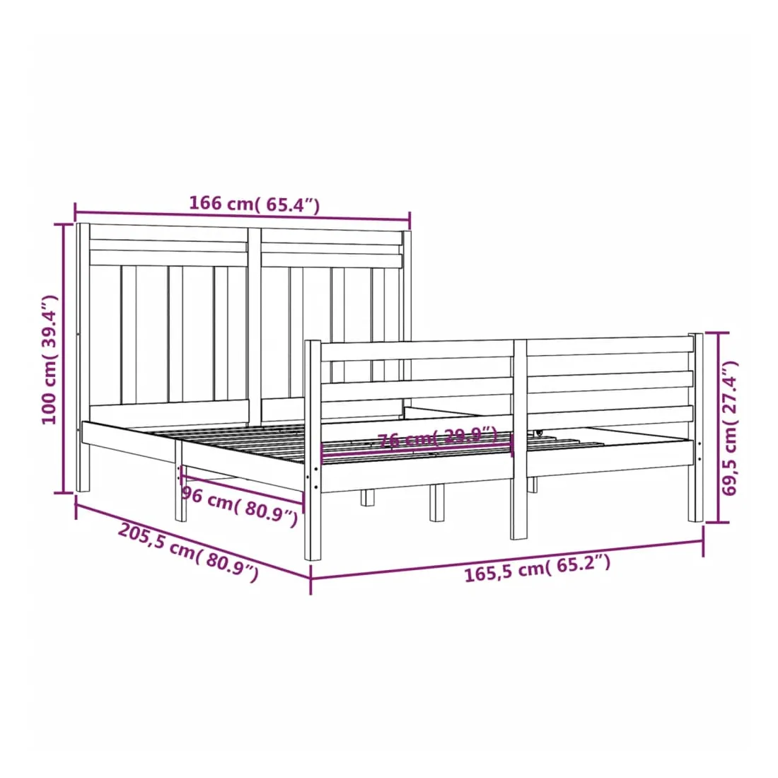 • Dimensions du cadre de lit : 205,5 x 165,5 x 69,5 cm (L x l x H)