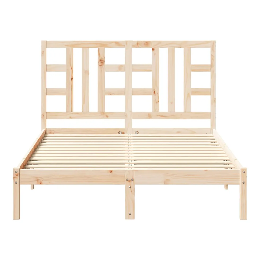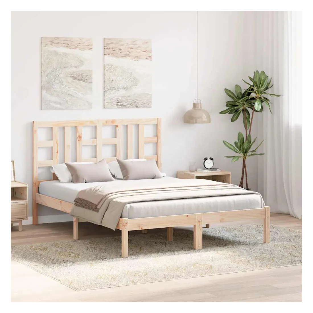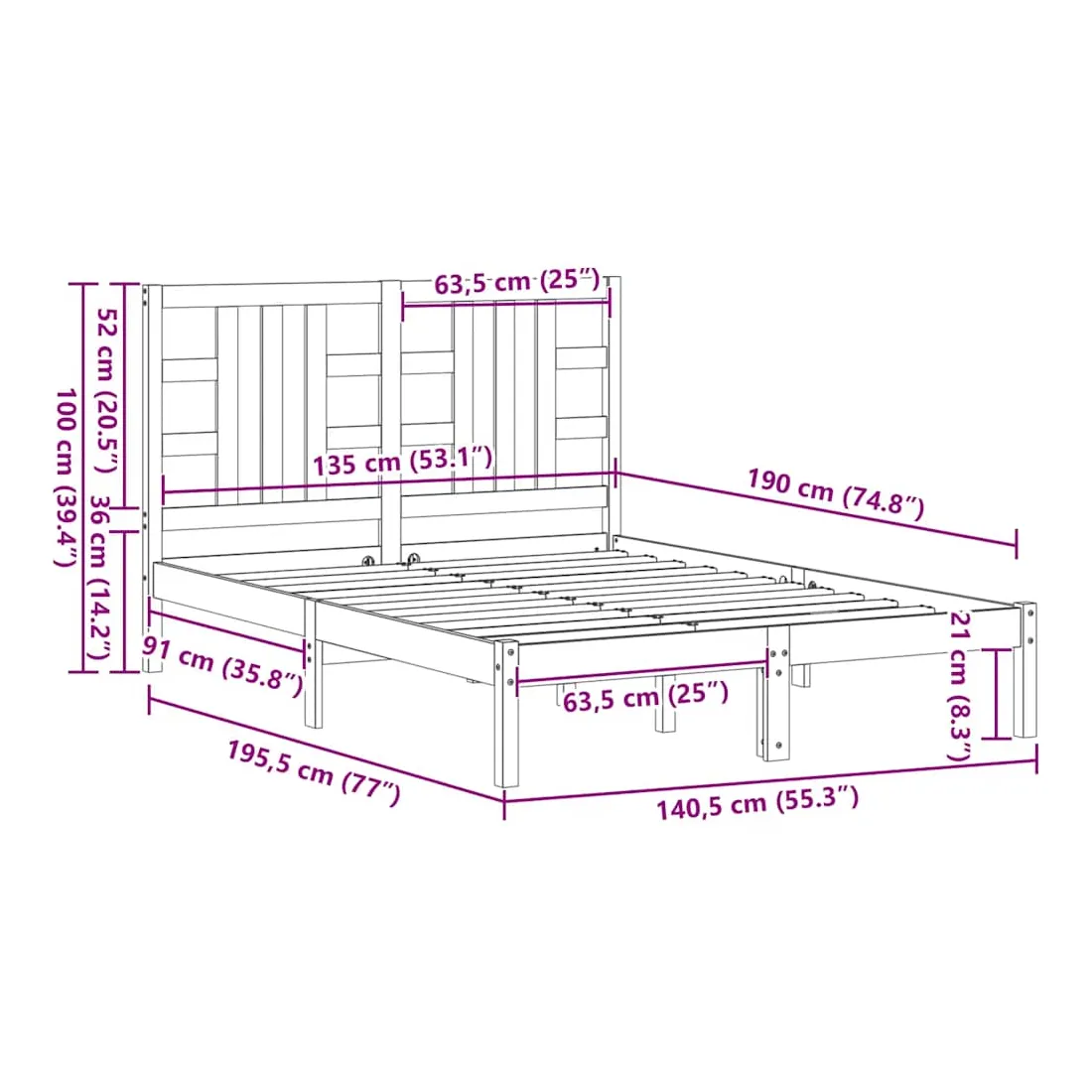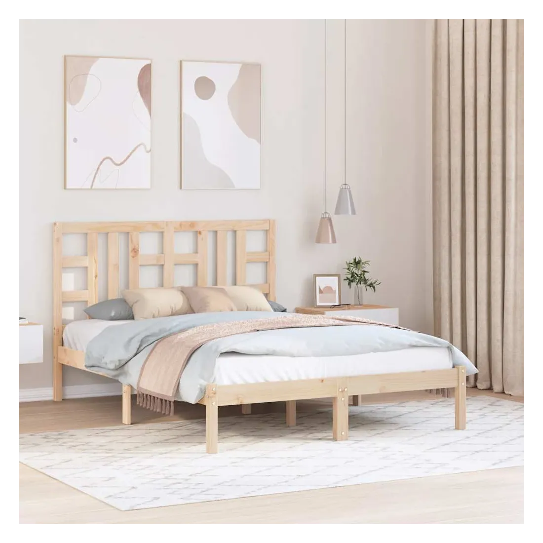 Ce cadre de lit classique, au design simple mais intemporel, est destiné à apporter une touche pratique et décorative à votre chambre à coucher. Bois de pin massif : le bois de pin massif est un matériau naturellement beau. Le bois de pin a un grain droit et les nœuds donnent au matériau son aspect caractéristique et rustique.Lattes de contreplaqué : les lattes de contreplaqué assurent une bonne répartition du poids, garantissant que le matelas reste en place à chaque torsion de votre corps pendant le sommeil.Expérience confortable : combinez ce cadre de lit et cette tête de lit en bois pour profiter pleinement de vos soirées. Qu'il s'agisse de vous reposer contre la tête de lit pour lire ou simplement faire un doux rêve, ce lit en bois saura répondre à vos besoins. Remarque :Le matelas n'est pas inclus. Vous pouvez consulter notre boutique pour trouver les matelas assortis.Ce cadre de lit convient à un matelas mesurant 135 x 190 cm (double).