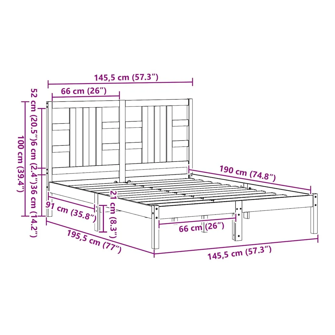 - Dimensions du cadre de lit : 195,5 x 145,5 x 31 cm (L x l x H)