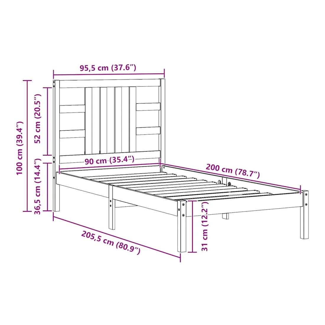 Ce cadre de lit classique, au design simple mais intemporel, est destiné à apporter une touche pratique et décorative à votre chambre à coucher. Bois de pin massif : le bois de pin massif est un matériau naturellement beau. Le bois de pin a un grain droit et les nœuds donnent au matériau son aspect caractéristique et rustique.Lattes de contreplaqué : les lattes de contreplaqué assurent une bonne répartition du poids, garantissant que le matelas reste en place à chaque torsion de votre corps pendant le sommeil.Expérience confortable : combinez ce cadre de lit et cette tête de lit en bois pour profiter pleinement de vos soirées. Qu'il s'agisse de vous reposer contre la tête de lit pour lire ou simplement faire un doux rêve, ce lit en bois saura répondre à vos besoins. Remarque :Le matelas n'est pas inclus. Vous pouvez consulter notre boutique pour trouver les matelas assortis.Ce cadre de lit convient à un matelas mesurant 90 x 200 cm.