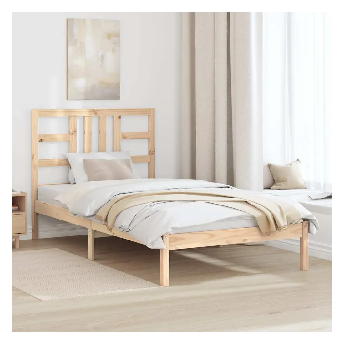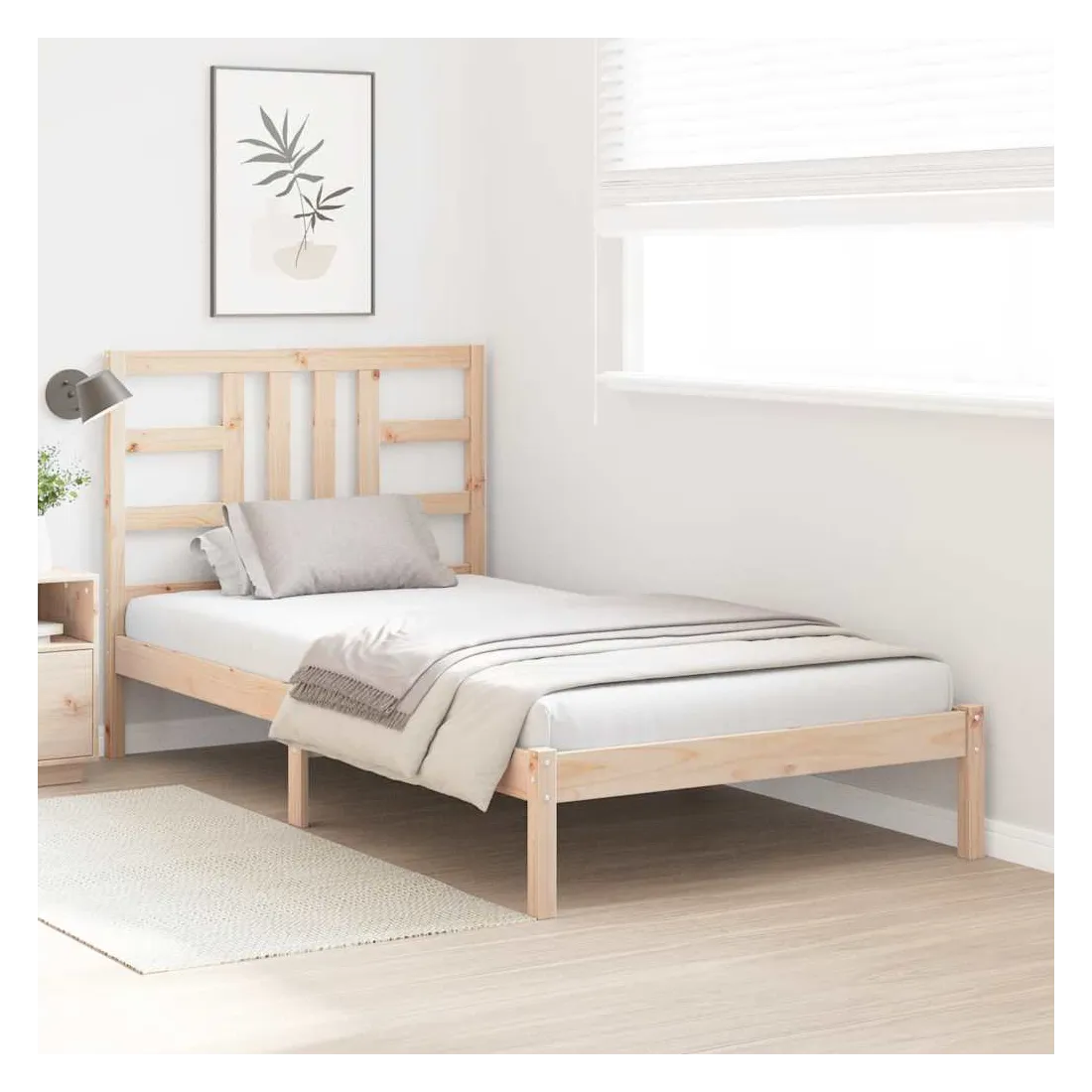 Ce cadre de lit classique, au design simple mais intemporel, est destiné à apporter une touche pratique et décorative à votre chambre à coucher. Bois de pin massif : le bois de pin massif est un matériau naturellement beau. Le bois de pin a un grain droit et les nœuds donnent au matériau son aspect caractéristique et rustique.Lattes de contreplaqué : les lattes de contreplaqué assurent une bonne répartition du poids, garantissant que le matelas reste en place à chaque torsion de votre corps pendant le sommeil.Expérience confortable : combinez ce cadre de lit et cette tête de lit en bois pour profiter pleinement de vos soirées. Qu'il s'agisse de vous reposer contre la tête de lit pour lire ou simplement faire un doux rêve, ce lit en bois saura répondre à vos besoins. Remarque :Le matelas n'est pas inclus. Vous pouvez consulter notre boutique pour trouver les matelas assortis.Ce cadre de lit convient à un matelas mesurant 100 x 200 cm.
