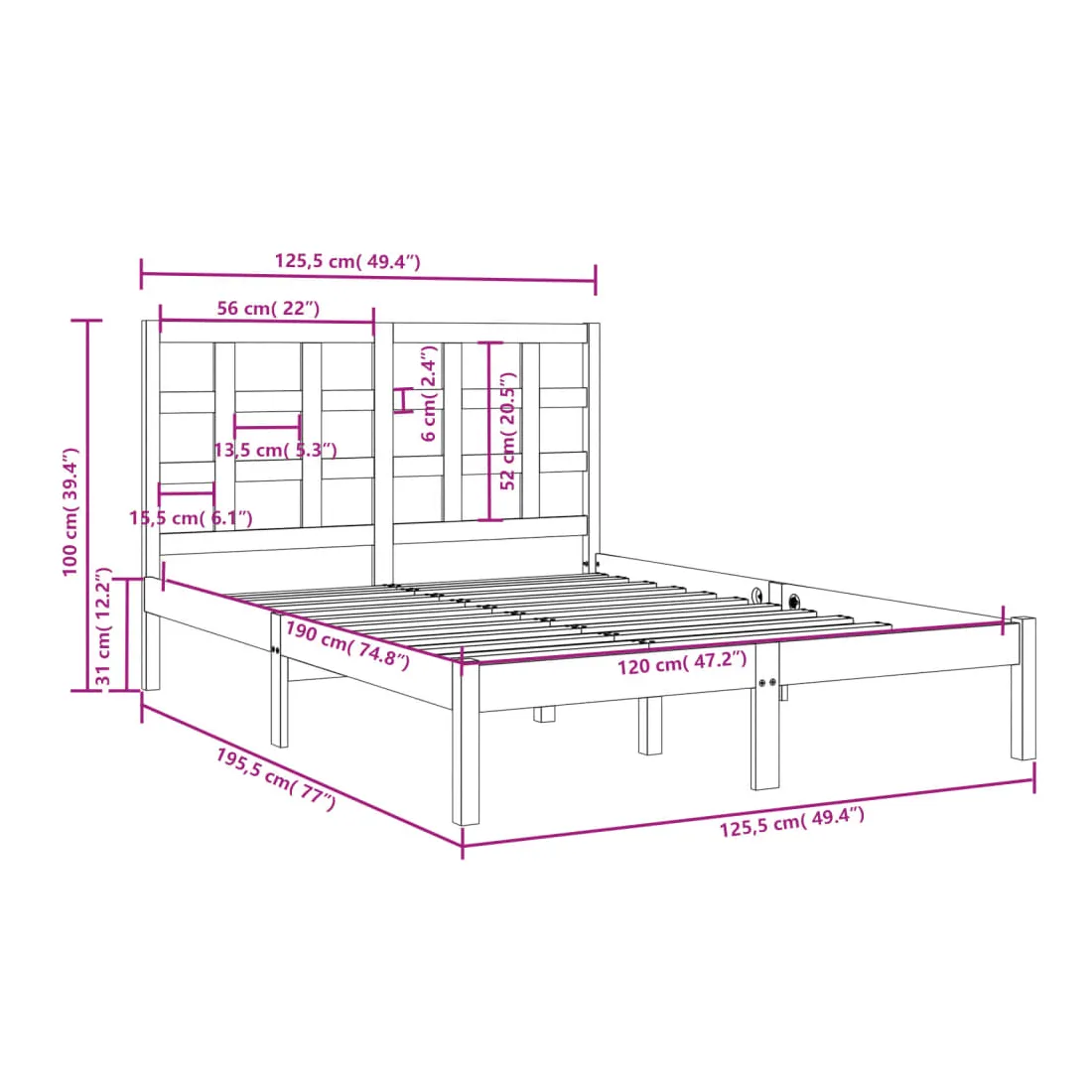 Cadre de lit sans matelas blanc 120x190 cm bois massif