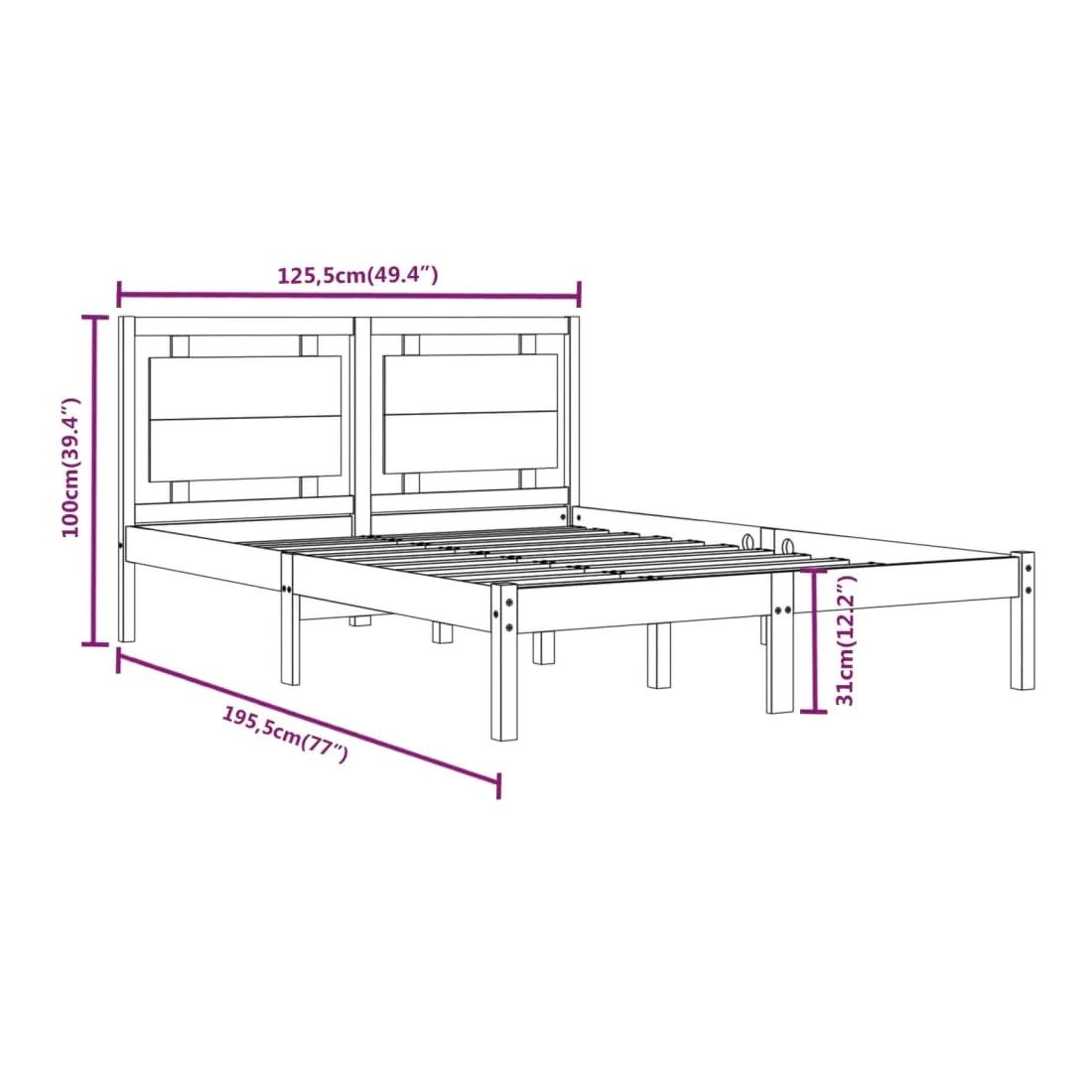 - Dimensions du cadre de lit : 195,5 x 125,5 x 31 cm (L x l x H)