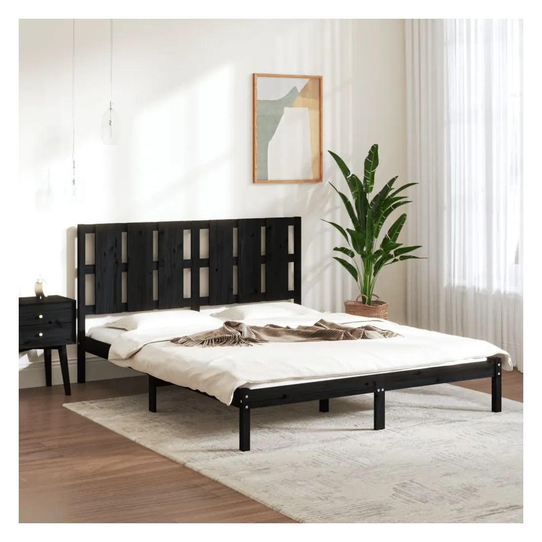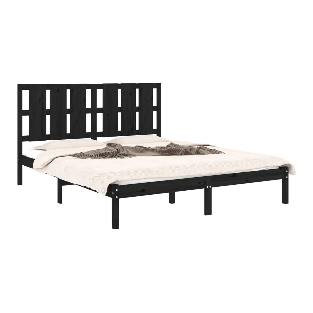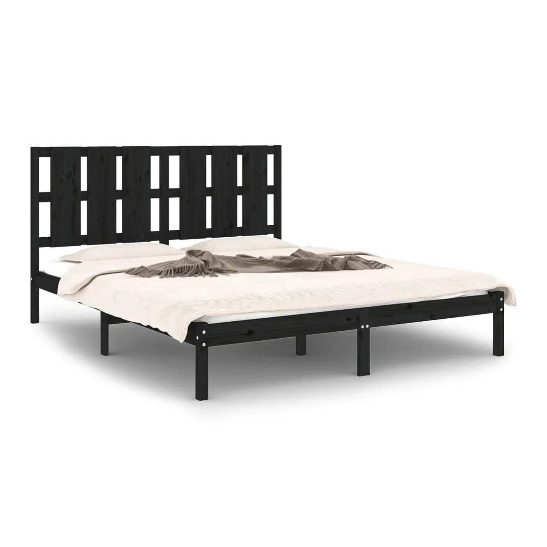 Cadre de lit sans matelas noir 150x200 cm bois massif