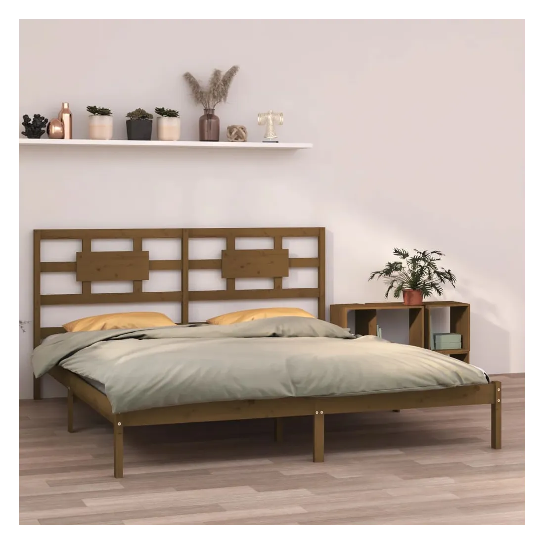 Cadre de lit sans matelas marron miel 200x200 cm bois massif