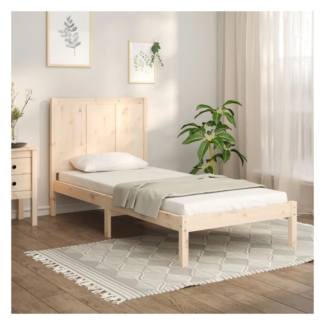 Prenez le chemin moderne vers votre chambre à coucher cool avec ce cadre de lit en bois ! Il constitue un supplément pratique et décoratif à votre intérieur. Bois de pin massif : le bois de pin massif est un matériau naturel magnifique. Le bois de pin a un grain droit et les nœuds donnent au matériau son aspect caractéristique et rustique.Cadre robuste et stable : le cadre en bois assure robustesse et stabilité.Tête de lit confortable : la tête de lit classique vous permet de vous reposer confortablement lorsque vous lisez ou regardez un film.Design accrocheur : la conception de la tête de lit est décorative et pratique. Il ajoute un style et un confort uniques. Bon à savoir :La livraison comprend uniquement un cadre de lit. Le matelas n'est pas inclus. Vous pouvez consulter notre boutique pour trouver les matelas assortis.Certaines pièces de tête de lit sont emballées dans les cartons du cadre de lit en raison du manque d’espace.Ce cadre de lit convient à un matelas mesurant 100 x 200 cm.