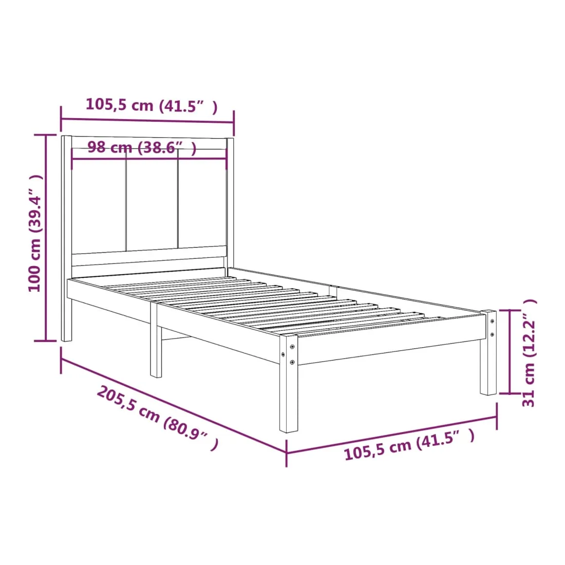 • Dimensions du cadre de lit : 205,5 x 105,5 x 31 cm (L x l x H)