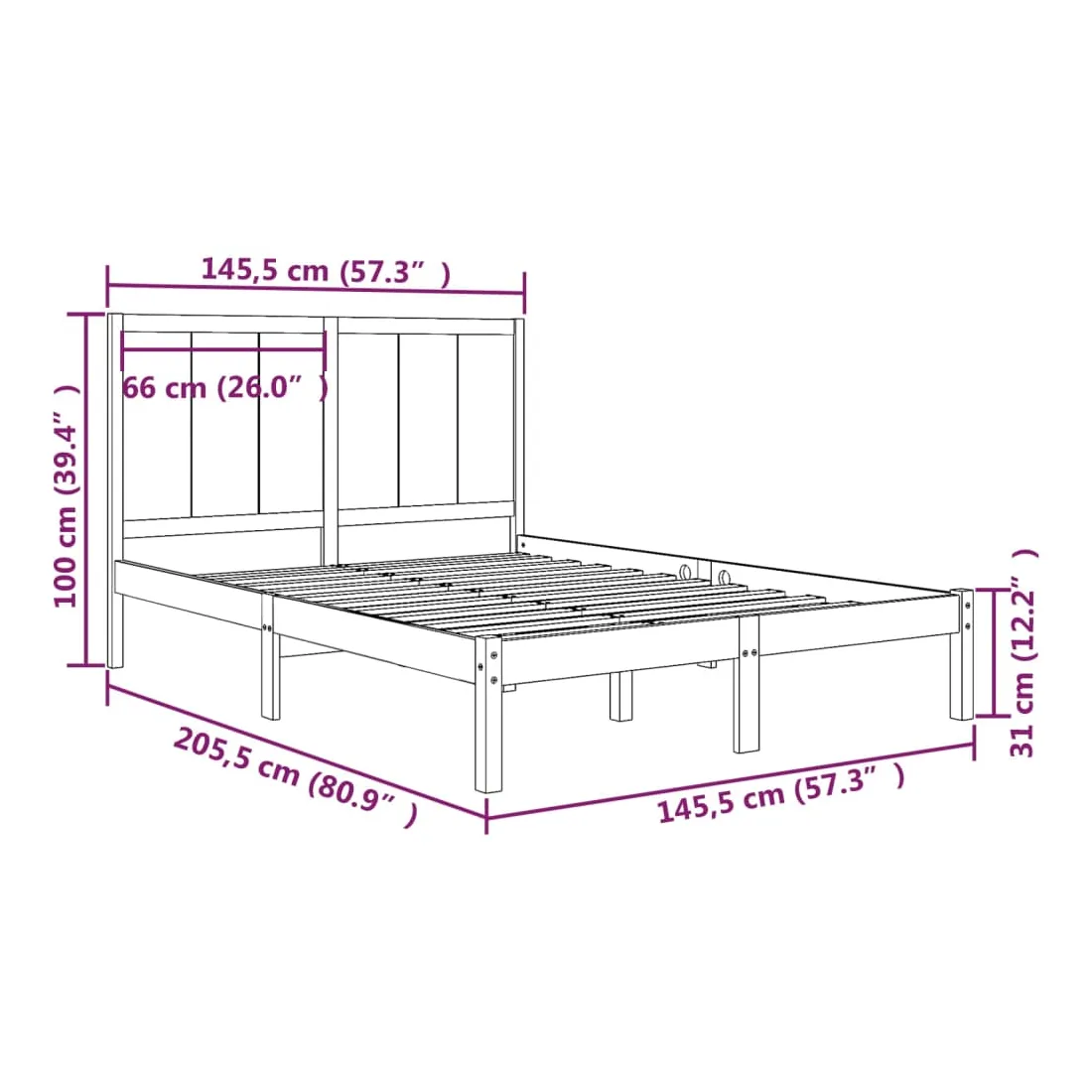 • Dimensions du cadre de lit : 205,5 x 145,5 x 31 cm (L x l x H)
