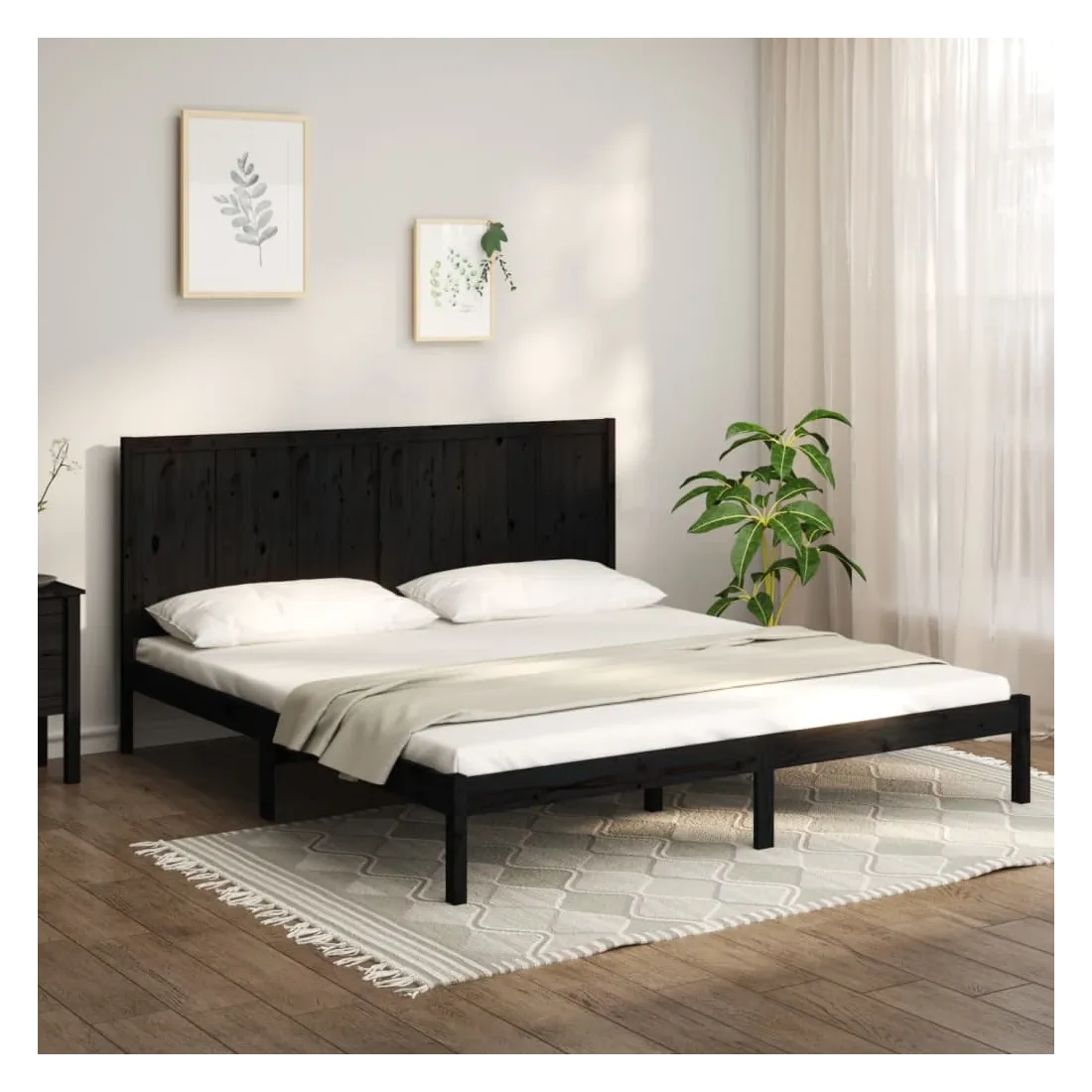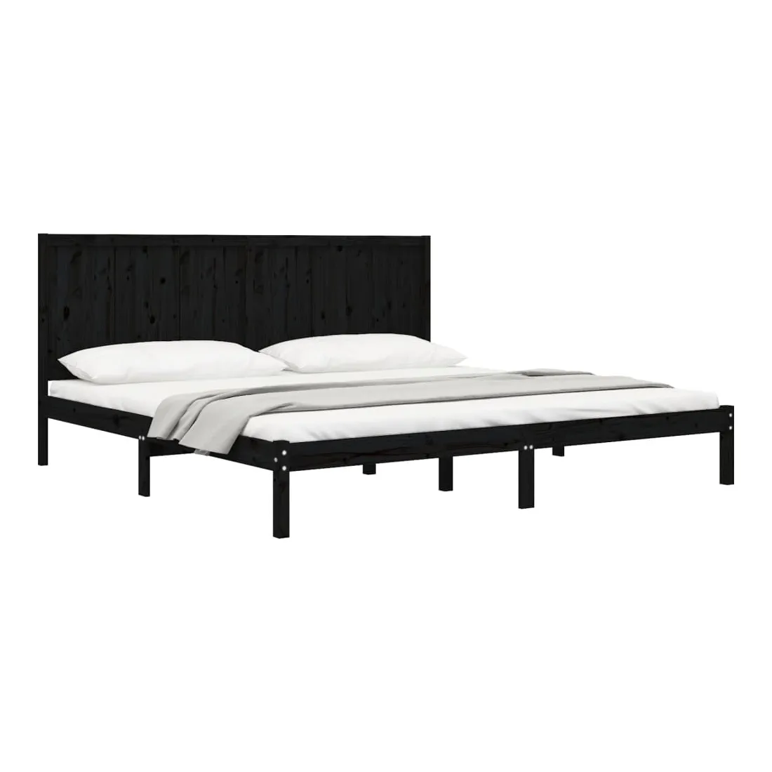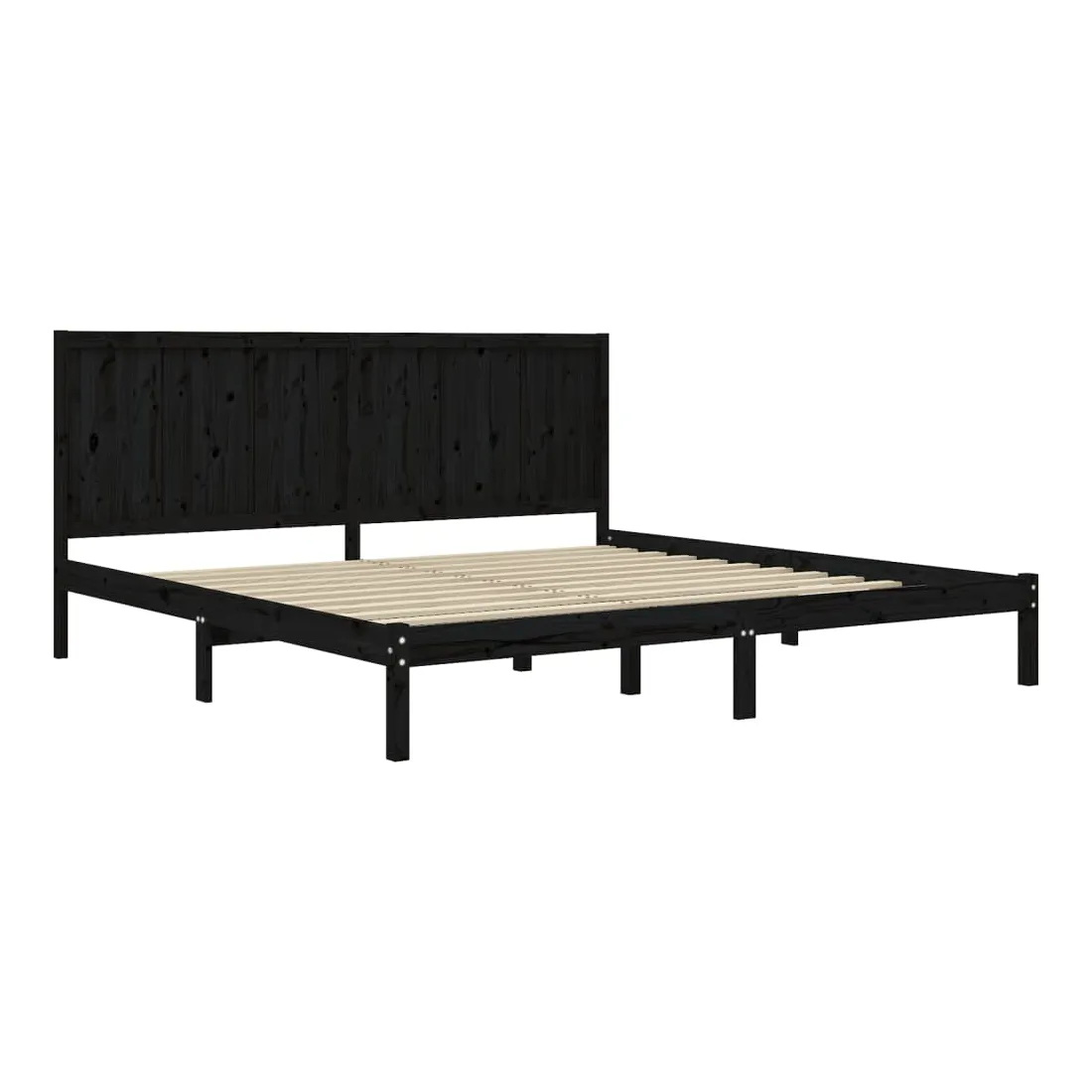 Cadre de lit sans matelas noir 200x200 cm bois massif de pin