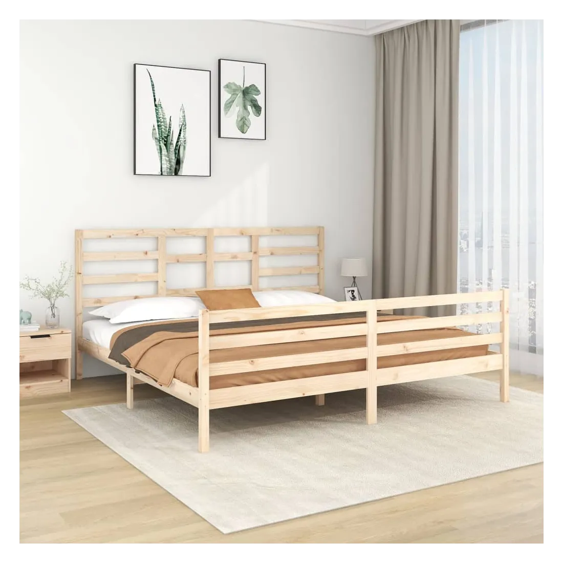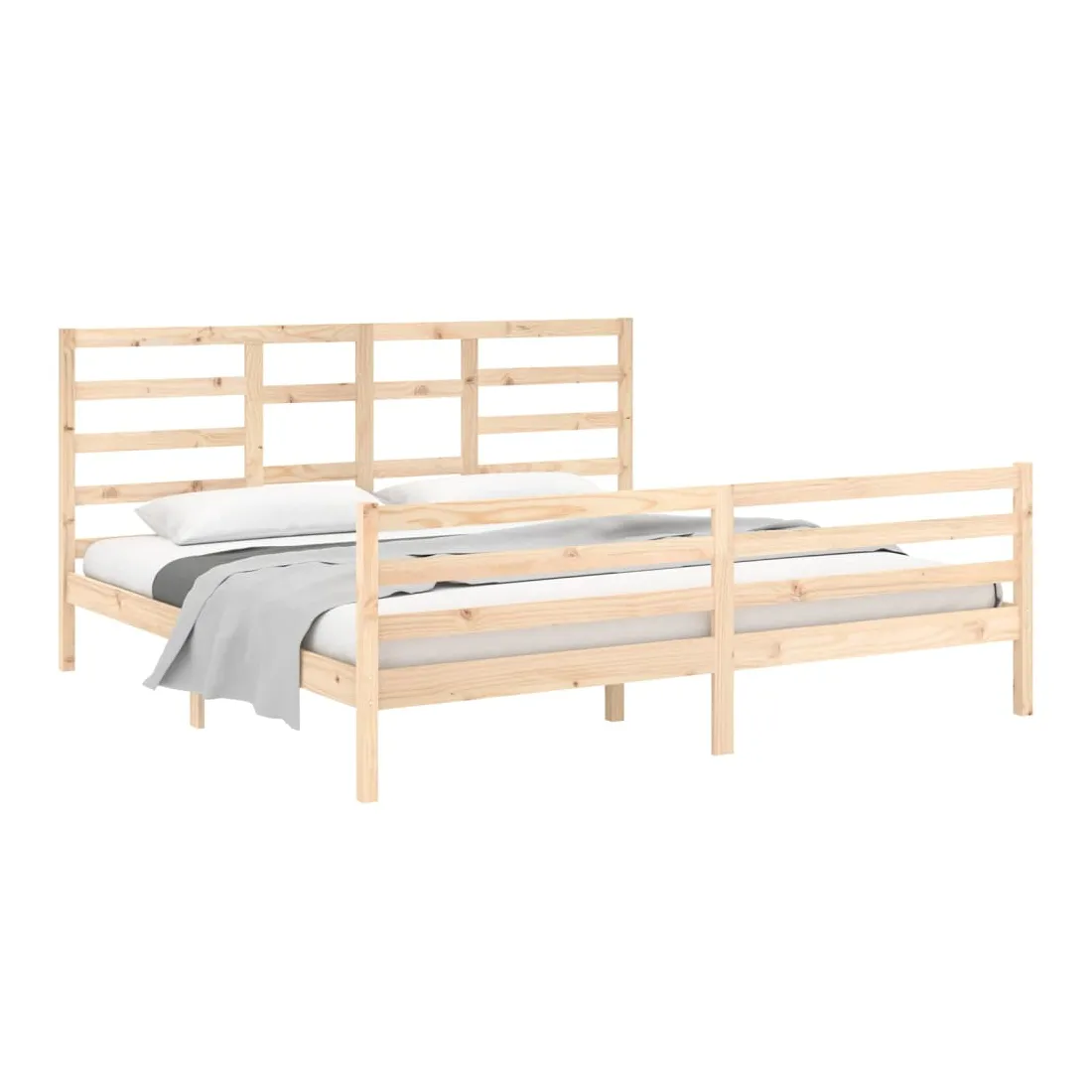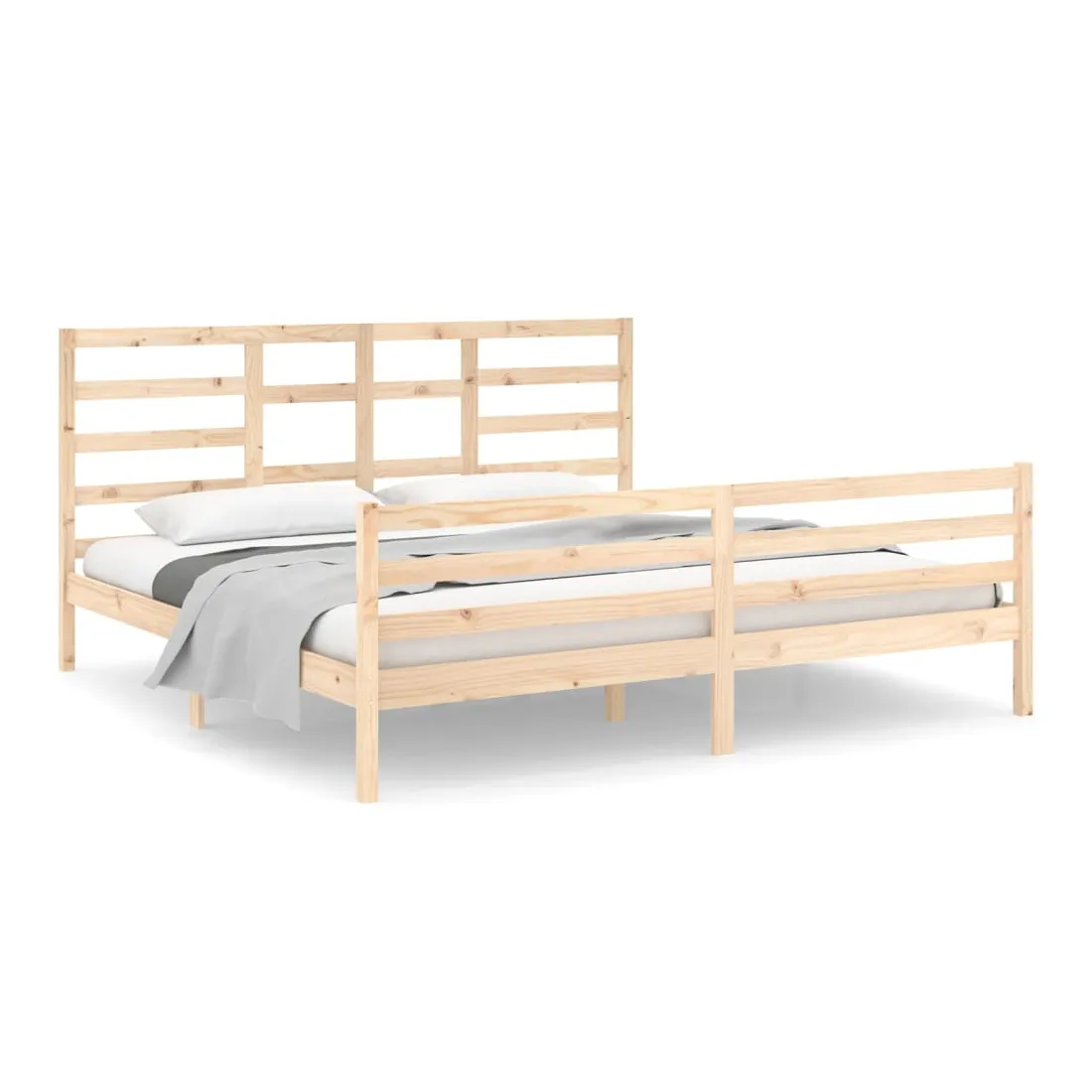 Prenez le chemin moderne vers votre chambre à coucher cool avec ce cadre de lit en bois ! Il constitue un supplément pratique et décoratif à votre intérieur. Bois de pin massif : le bois de pin massif est un matériau naturel magnifique. Le bois de pin a un grain droit et les nœuds donnent au matériau son aspect caractéristique et rustique.Cadre de lit stable : le cadre en bois assure robustesse et stabilité. Les lattes de contreplaqué assurent une bonne répartition du poids, garantissant que le matelas reste en place à chaque torsion de votre corps pendant le sommeil.Design accrocheur : la conception de la tête et du pied de lit est à la fois décorative et pratique. Il ajoute un style et un confort uniques. Bon à savoir :La livraison comprend uniquement un cadre de lit. Le matelas n'est pas inclus. Vous pouvez consulter notre boutique pour trouver les matelas assortis.Certaines pièces de tête de lit sont emballées dans les cartons du cadre de lit en raison du manque d’espace.Ce cadre de lit convient à un matelas mesurant 200 x 200 cm.