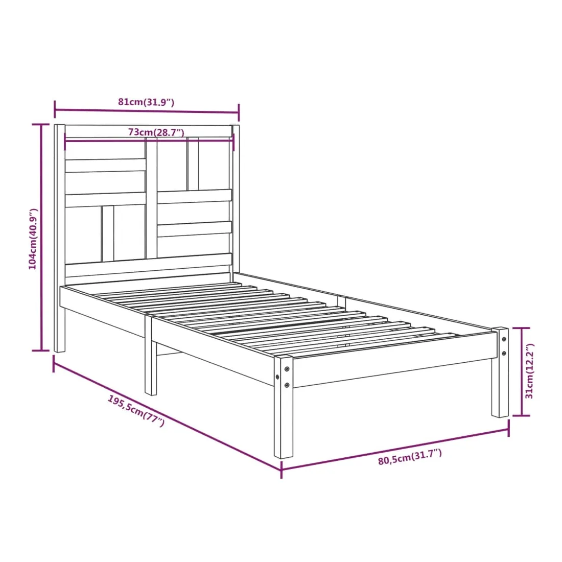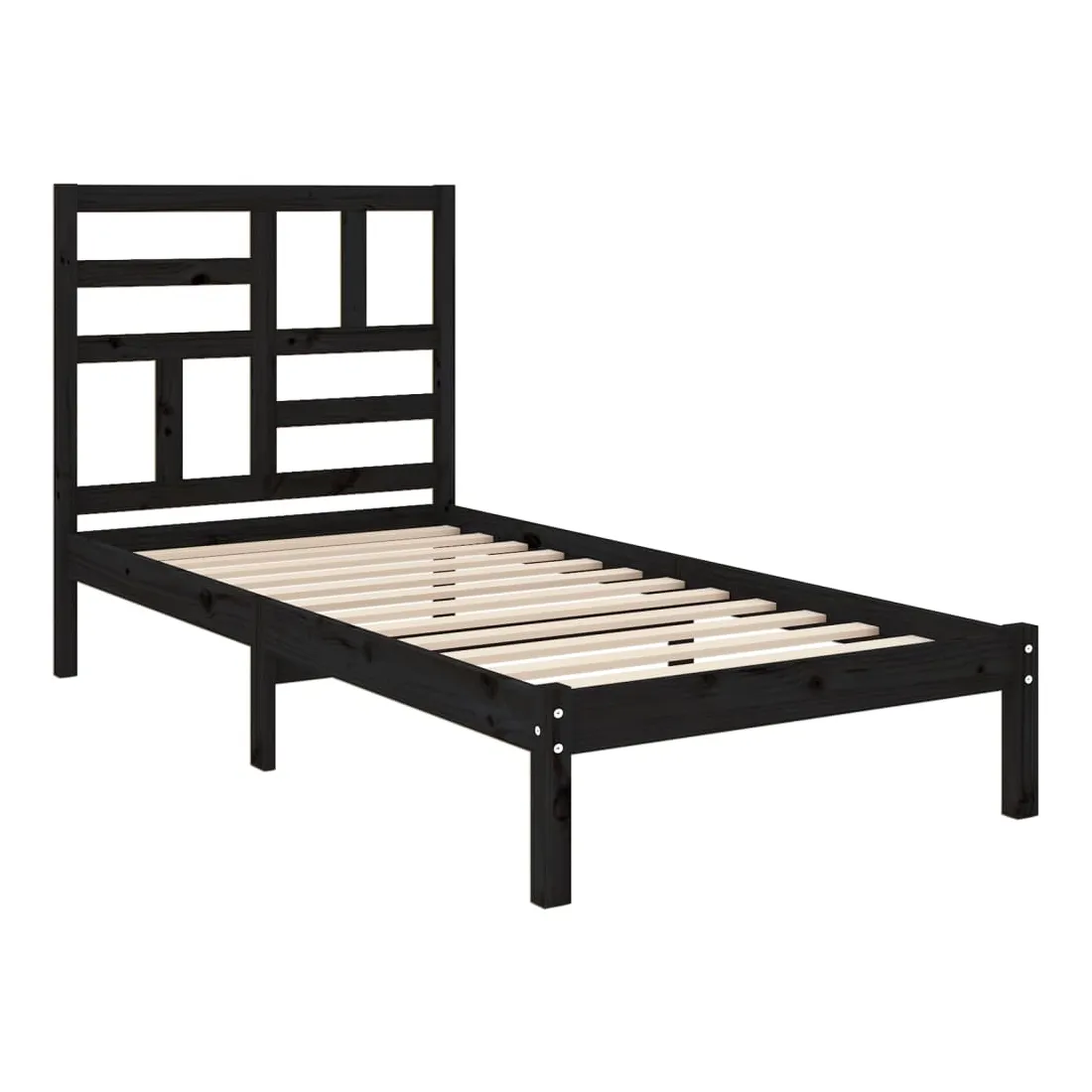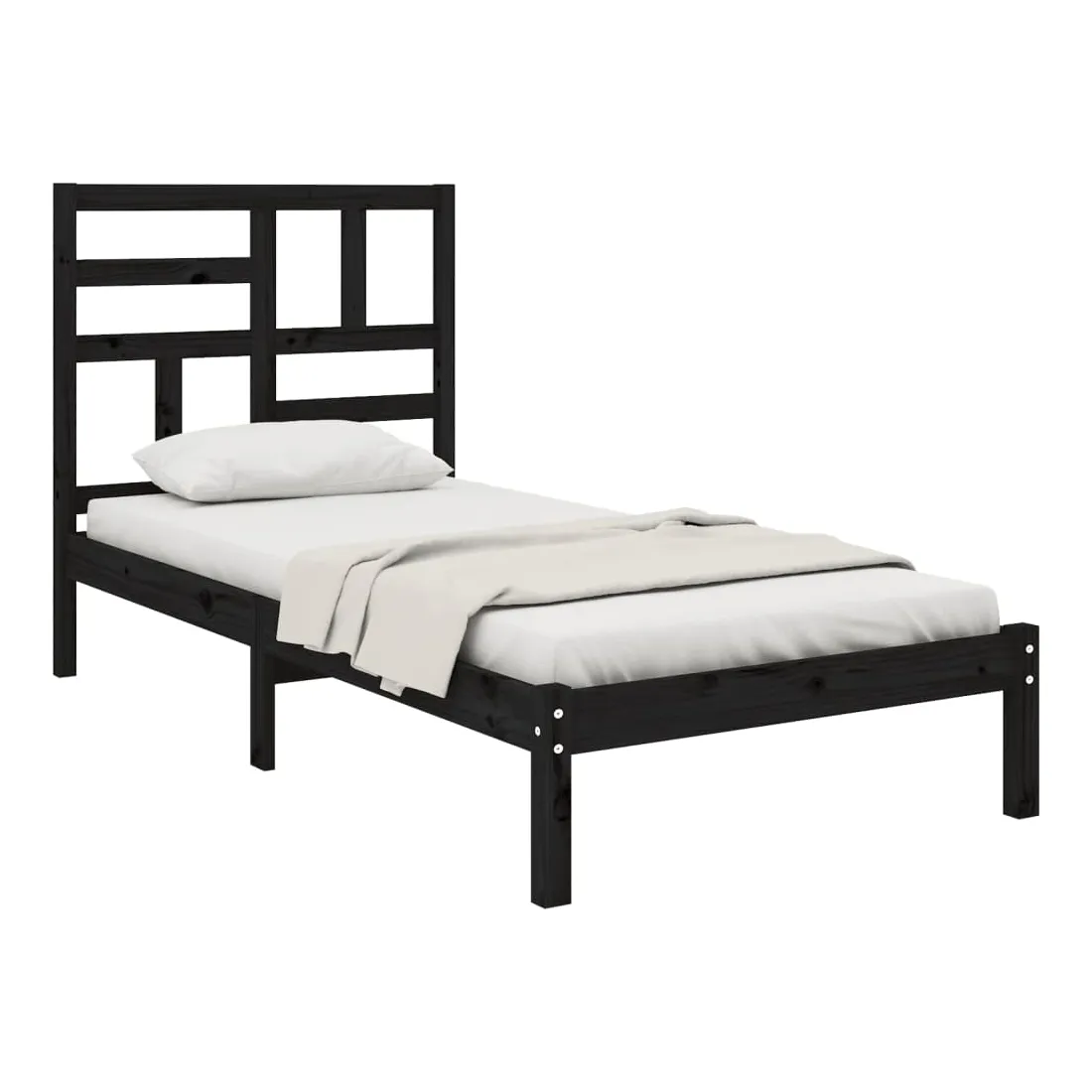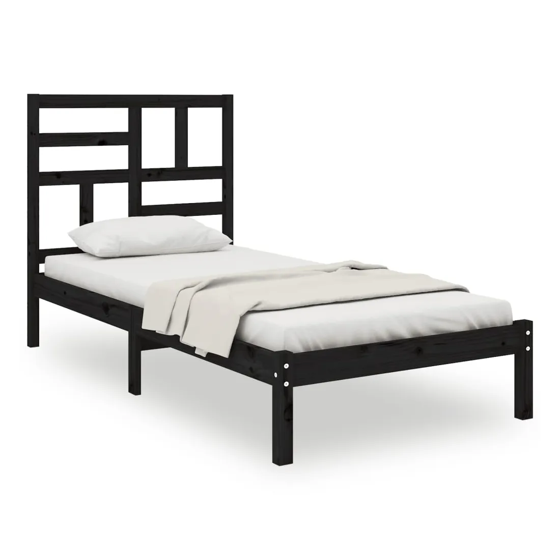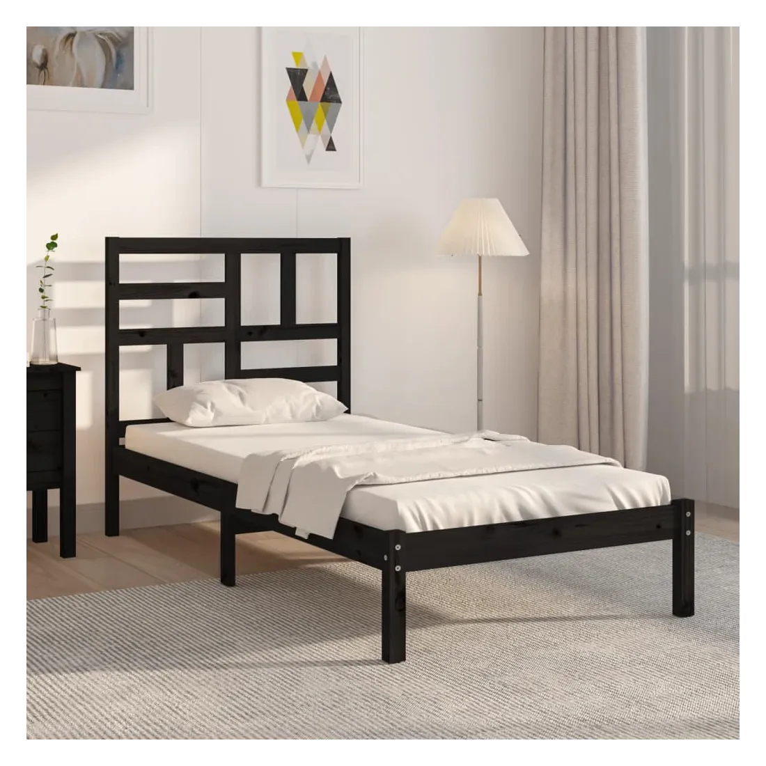 Cadre de lit sans matelas noir bois massif 75x190 cm