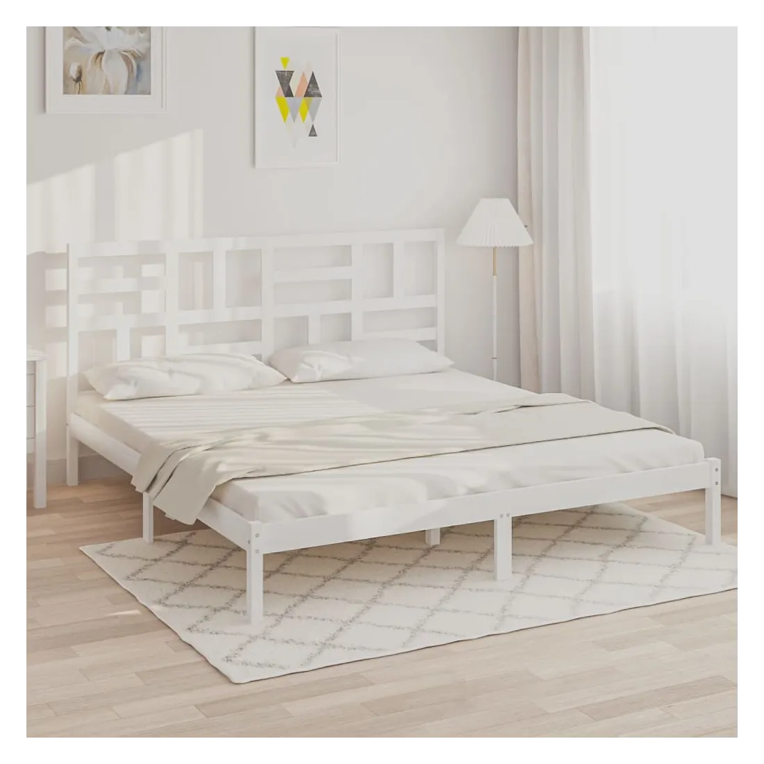 Prenez le chemin moderne vers votre chambre à coucher cool avec ce cadre de lit en bois ! Il constitue un supplément pratique et décoratif à votre intérieur. Bois de pin massif : le bois de pin massif est un matériau naturel magnifique. Le bois de pin a un grain droit et les nœuds donnent au matériau son aspect caractéristique et rustique.Cadre de lit stable : le cadre en bois assure robustesse et stabilité. Les lattes de contreplaqué assurent une bonne répartition du poids, garantissant que le matelas reste en place à chaque torsion de votre corps pendant le sommeil.Tête de lit confortable : la tête de lit classique vous permet de vous reposer confortablement lorsque vous lisez ou regardez un film. Remarque :La livraison comprend uniquement un cadre de lit. Le matelas n'est pas inclus. Vous pouvez consulter notre boutique pour trouver les matelas assortis.Ce cadre de lit convient à un matelas mesurant 180 x 200 cm (Super King).