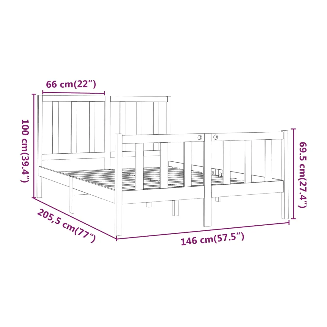 • Dimensions du cadre de lit : 205,5 x 146 x 69,5 cm (L x l x H)