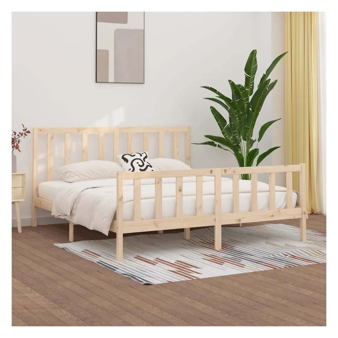 Avec un design simple mais intemporel, ce cadre de lit en bois sera un supplément vraiment pratique et décoratif à votre chambre à coucher. Matériau de première qualité : le bois de pin massif est un matériau naturel magnifique. Le bois de pin a un grain droit et les nœuds donnent au matériau son aspect caractéristique et rustique.Cadre robuste et stable : les cadres de lit en bois en bois assurent robustesse et stabilité.Soutien confortable : la tête de lit vous offre un excellent soutien dorsal lorsque vous êtes assis au lit pour lire ou regarder des films.Design intemporel : la couleur et le design du sommier peuvent s'assortir facilement avec votre intérieur. Remarque :Le matelas n'est pas inclus. Vous pouvez consulter notre boutique pour trouver les matelas assortis (200 x 200 cm).