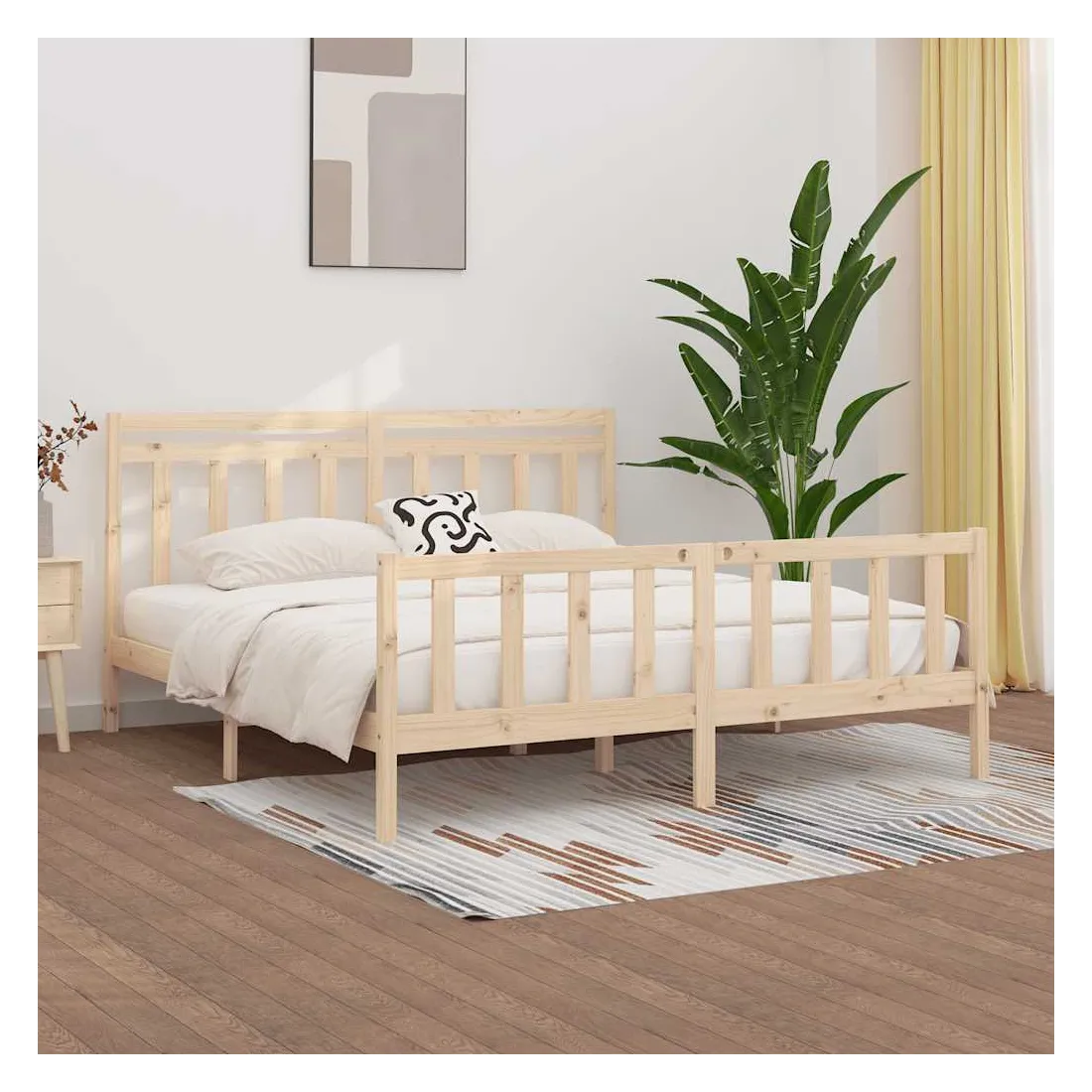 Profitez d'une bonne nuit de sommeil dans notre cadre de lit en bois classique ! Il se veut un supplément pratique et décoratif à votre intérieur. Bois de pin massif : le bois de pin massif est un matériau naturel magnifique. Le bois de pin a un grain droit et les nœuds donnent au matériau son aspect caractéristique et rustique.Lattes de contreplaqué : les lattes de contreplaqué de ce lit assurent une bonne répartition du poids, garantissant que le matelas reste en place à chaque torsion de votre corps pendant le sommeil.Tête de lit confortable : la tête de lit classique de ce cadre de lit en bois massif vous permet de vous reposer confortablement tout en lisant ou en regardant un film. Remarque :La livraison comprend uniquement un cadre de lit. Le matelas n'est pas inclus. Vous pouvez consulter notre boutique pour trouver les matelas assortis.Ce cadre de lit convient à un matelas mesurant 200 x 200 cm.