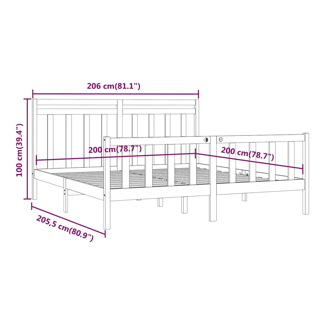 Cadre de lit sans matelas bois massif de pin 200x200 cm