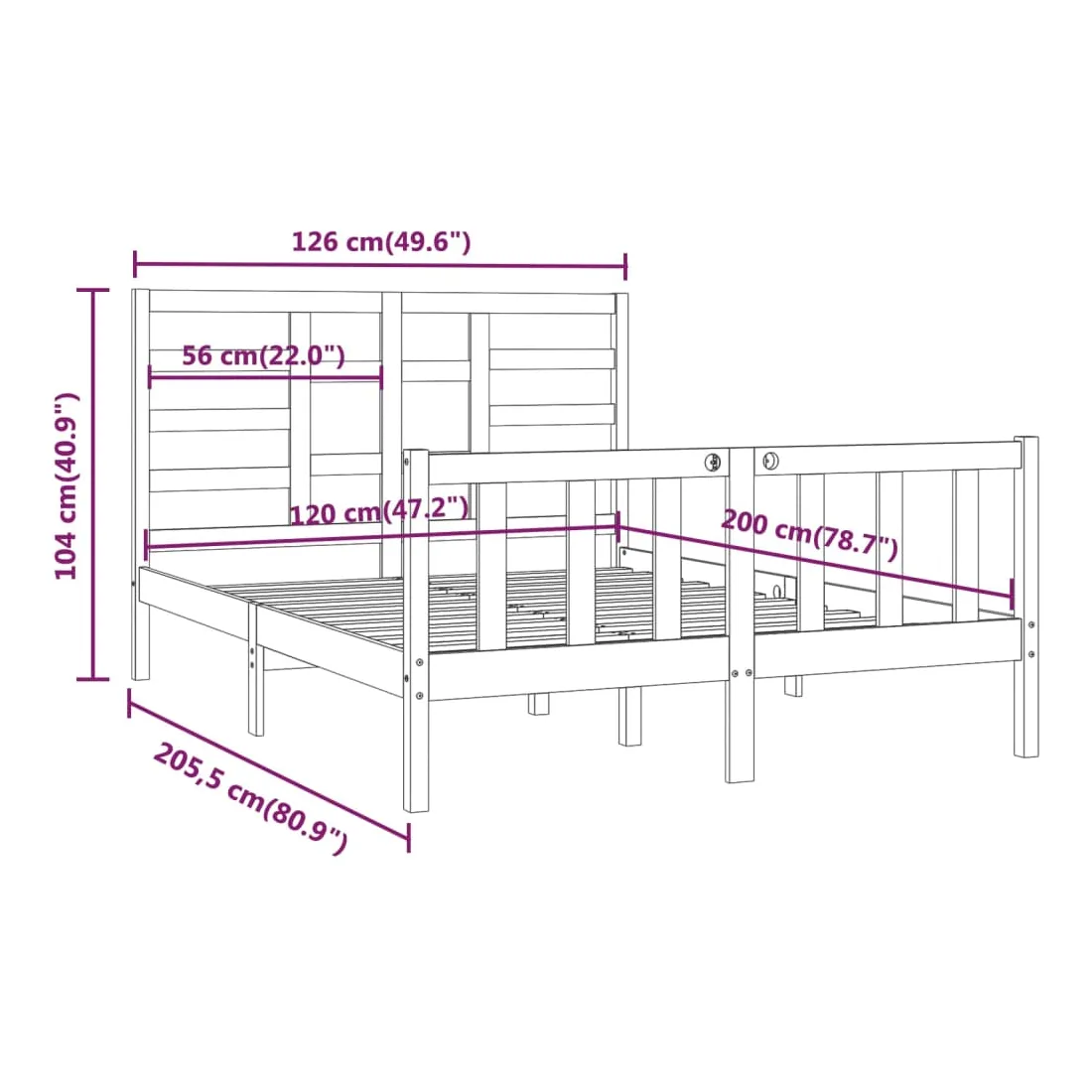 Cadre de lit sans matelas 120x200 cm bois de pin massif