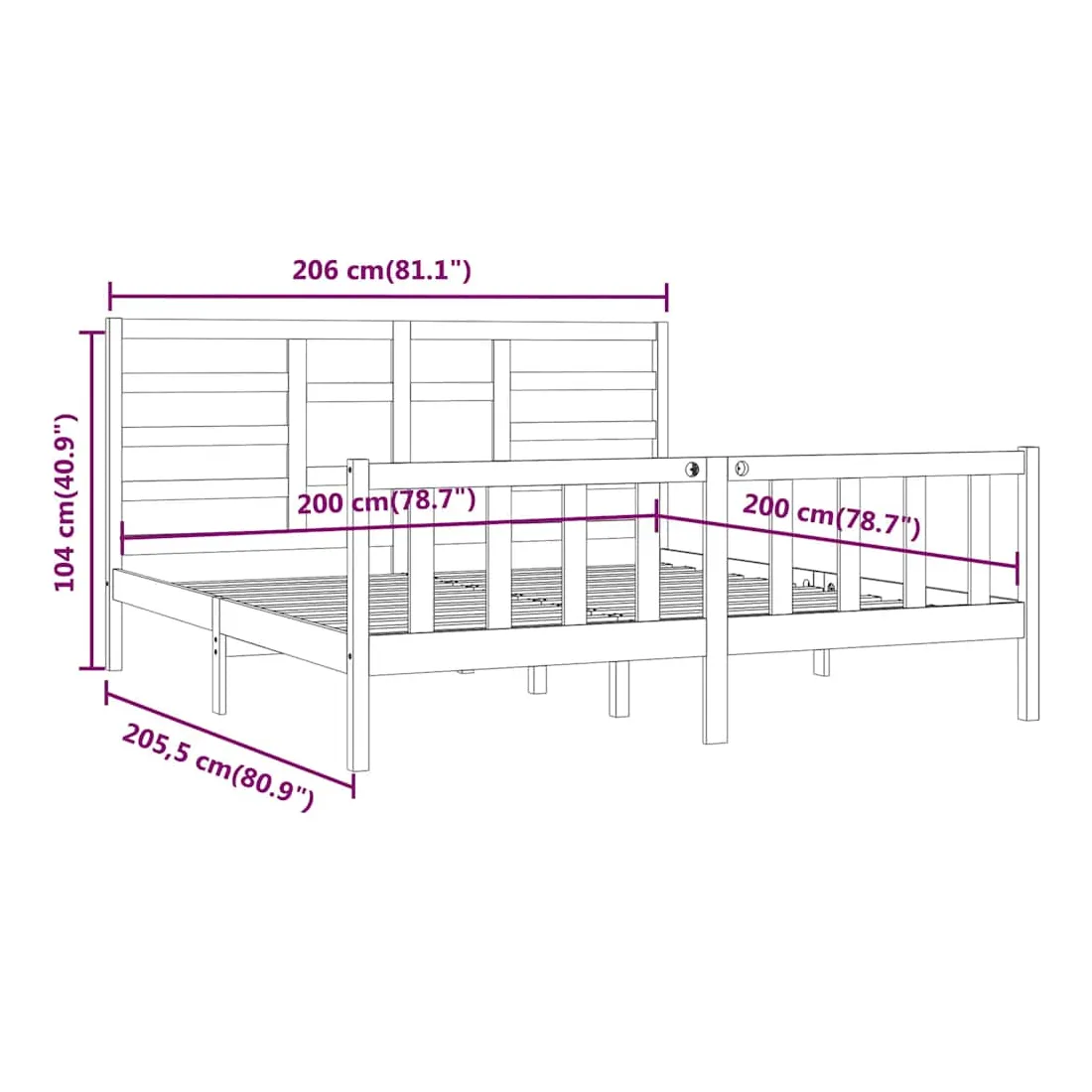 - Dimensions de la tête de lit : 206 x 4 x 104 cm (l x P x H)