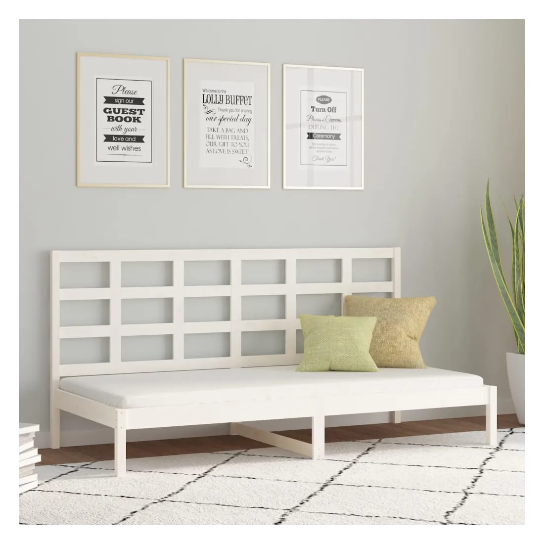 Ce lit de jour classique en bois, au design simple mais intemporel, est conçu pour être un supplément vraiment pratique et décoratif à votre maison. Bois de pin massif : le bois de pin massif est un matériau naturellement beau. Le bois de pin a un grain droit et les nœuds donnent au matériau son aspect caractéristique et rustique. Le lit d'amis est fait de bois de pin massif, ce qui le rend plus stable et durable. Design à lattes : le sommier à lattes permet une meilleure circulation de l'air pour garder le matelas frais plus longtemps, améliorant la capacité de poids du lit et assurant la stabilité. Soutien confortable : le dossier en bois vous offre un soutien suffisant lorsque vous êtes assis sur le canapé-lit pour lire ou regarder des films.Canapé-lit multifonctionnel : ce lit de jour en bois peut être utilisé comme canapé pendant la journée ou comme lit la nuit, offrant une solution rapide pour accueillir des invités pour la nuit. Espace de rangement supplémentaire : profitez de l'espace sous le canapé pour ranger divers objets. Parfait pour ranger des boîtes pour organiser des vêtements, des jouets ou des couettes. Remarque :La livraison comprend uniquement un cadre de lit de jour. Le matelas n'est pas inclus. Vous pouvez consulter notre boutique pour trouver les matelas assortis.Chaque produit est livré avec un manuel de montage dans la boîte pour un montage facile.