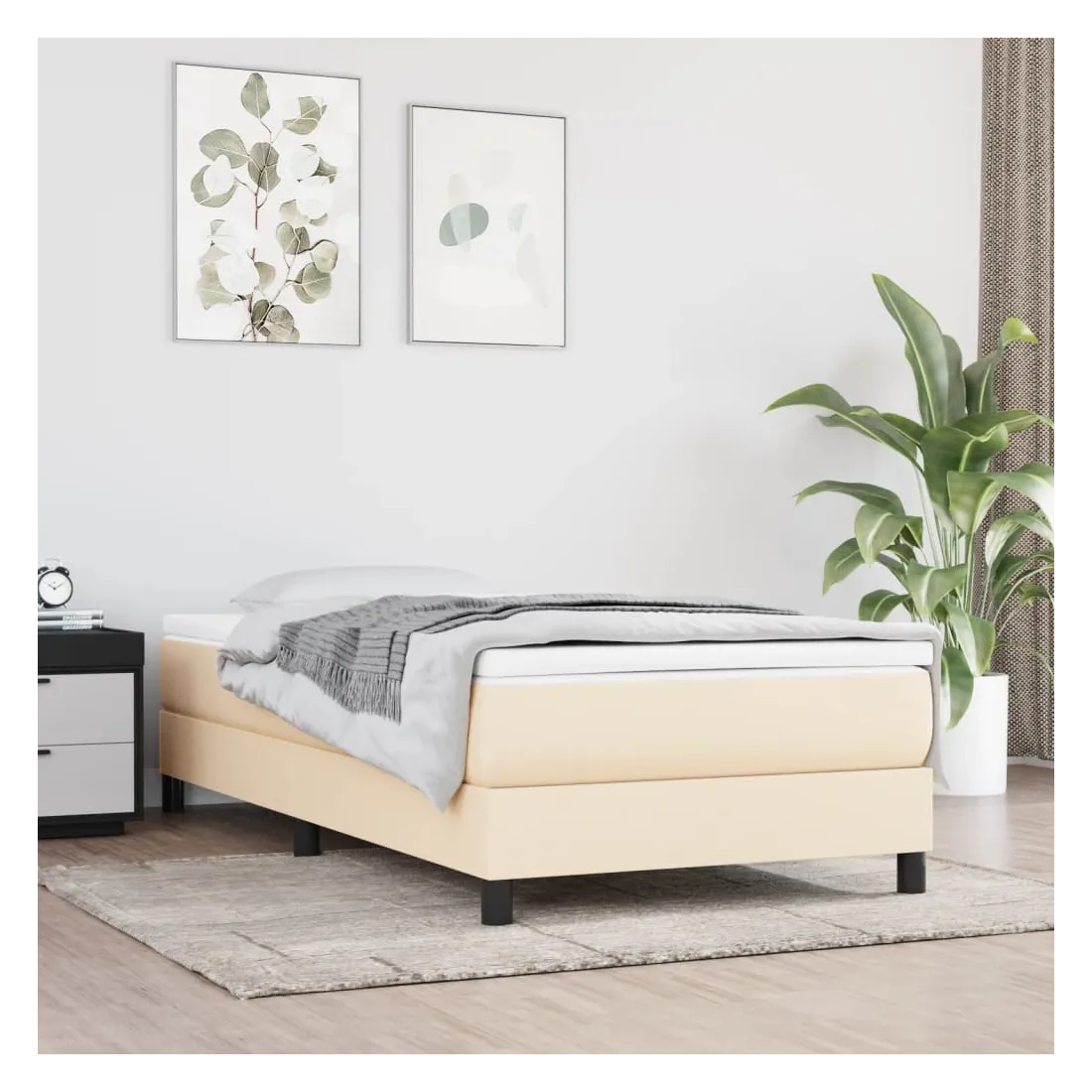 Obtenez une meilleure nuit de sommeil reposante grâce à ce cadre de lit à ressorts ! Il est un supplément accueillant à toute chambre à coucher. Tissu durable : le tissu présente un aspect simple et épuré, et il est respirant et durable.Pieds de soutien : le lit est soutenu par des pieds robustes, qui assurent sa stabilité, sa sécurité et sa fermeté.Lattes de contreplaqué : les lattes de contreplaqué assurent une bonne répartition du poids, garantissant que le matelas reste en place à chaque torsion de votre corps pendant le sommeil. Bon à savoir :Un matelas n'est pas inclus avec ce lit. Nous offrons une sélection variée de matelas. Vous pouvez consulter notre boutique pour trouver un matelas assorti.