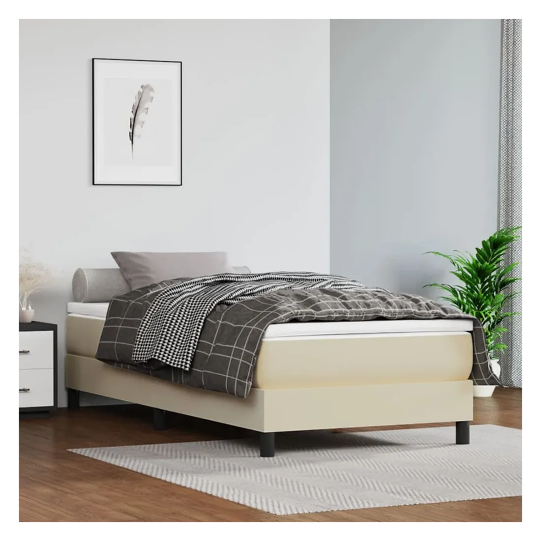Cadre de lit à ressorts crème 100x200 cm similicuir