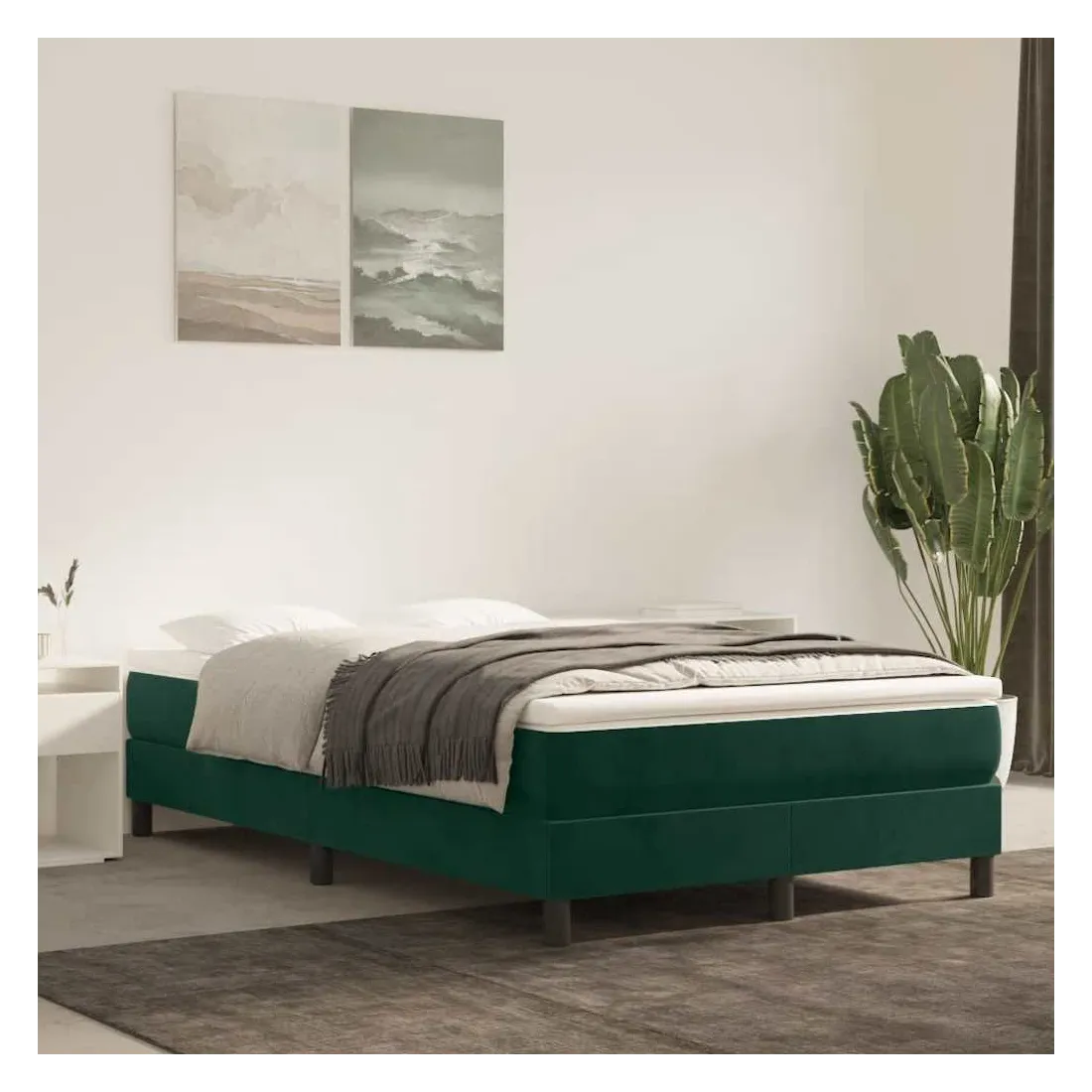 Obtenez une meilleure nuit de sommeil reposante grâce à ce cadre de lit à ressorts ! Il est un supplément accueillant à toute chambre à coucher. Velours doux : le velours est un tissu doux et luxueux qui se reconnaît à son tas dense de fibres uniformément coupées qui ont une touche lisse. Le tissu en velours présente un toucher doux distinctif, ce qui le rend confortable au toucher.Pieds de soutien : le lit est soutenu par des pieds robustes, qui assurent sa stabilité, sa sécurité et sa fermeté.Lattes de contreplaqué : les lattes de contreplaqué assurent une bonne répartition du poids, garantissant que le matelas reste en place à chaque torsion de votre corps pendant le sommeil. Bon à savoir :Un matelas n'est pas inclus avec ce lit. Nous offrons une sélection variée de matelas. Vous pouvez consulter notre boutique pour trouver un matelas assorti.