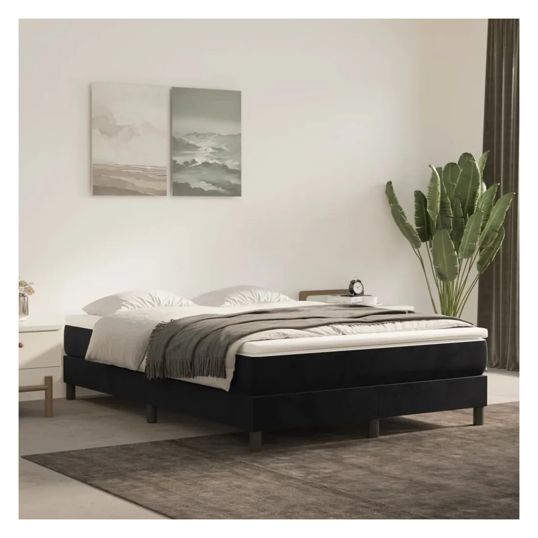 Cadre de lit à ressorts noir 140x190 cm velours
