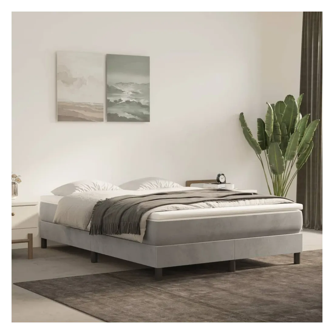 Cadre de lit à ressorts gris clair 140x200 cm velours