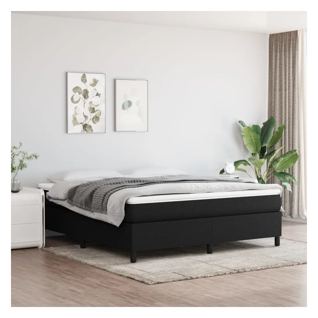 Cadre de lit à ressorts noir 180x200 cm tissu
