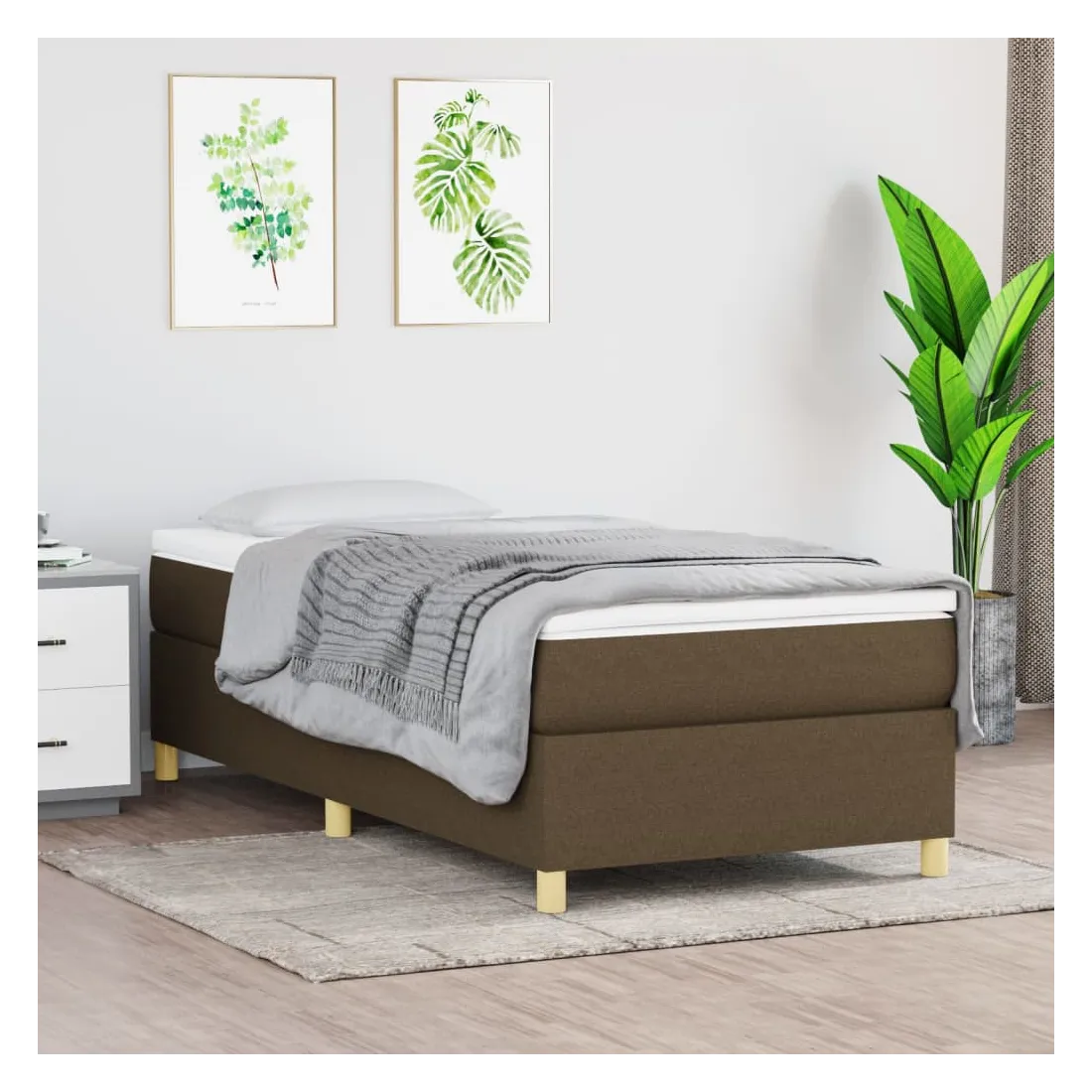 Cadre de lit à ressorts marron foncé 90x190 cm tissu