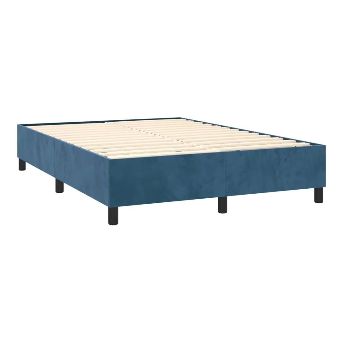 Cadre de lit à ressorts bleu foncé 140x200 cm velours