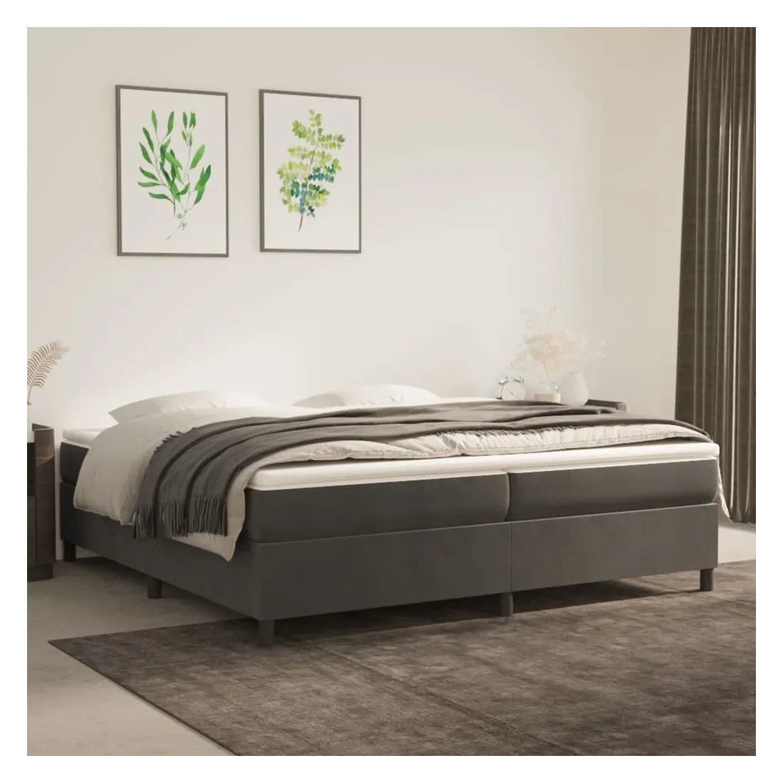 Cadre de lit à ressorts gris foncé 200x200 cm velours