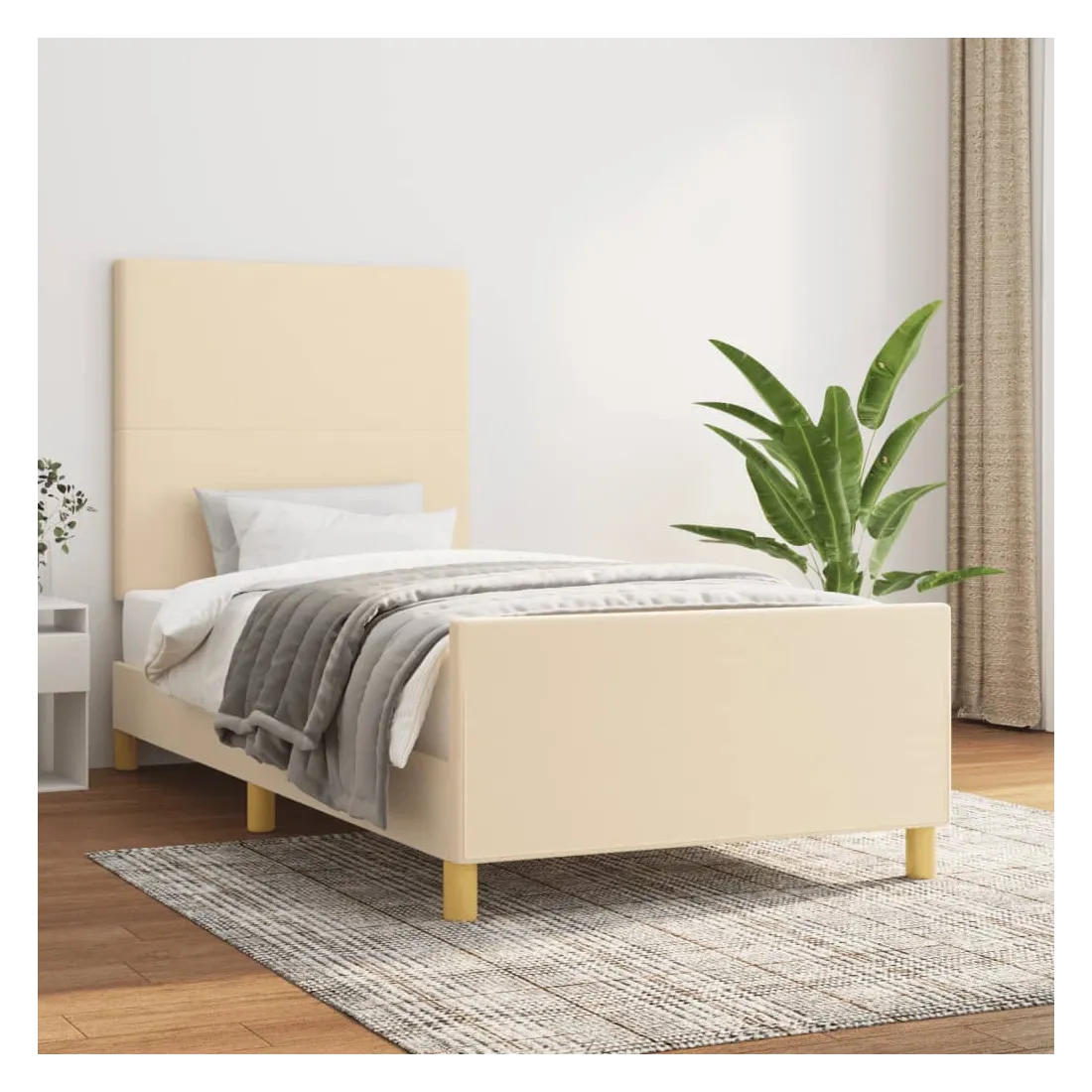 Cadre de lit sans matelas crème 100x200 cm tissu