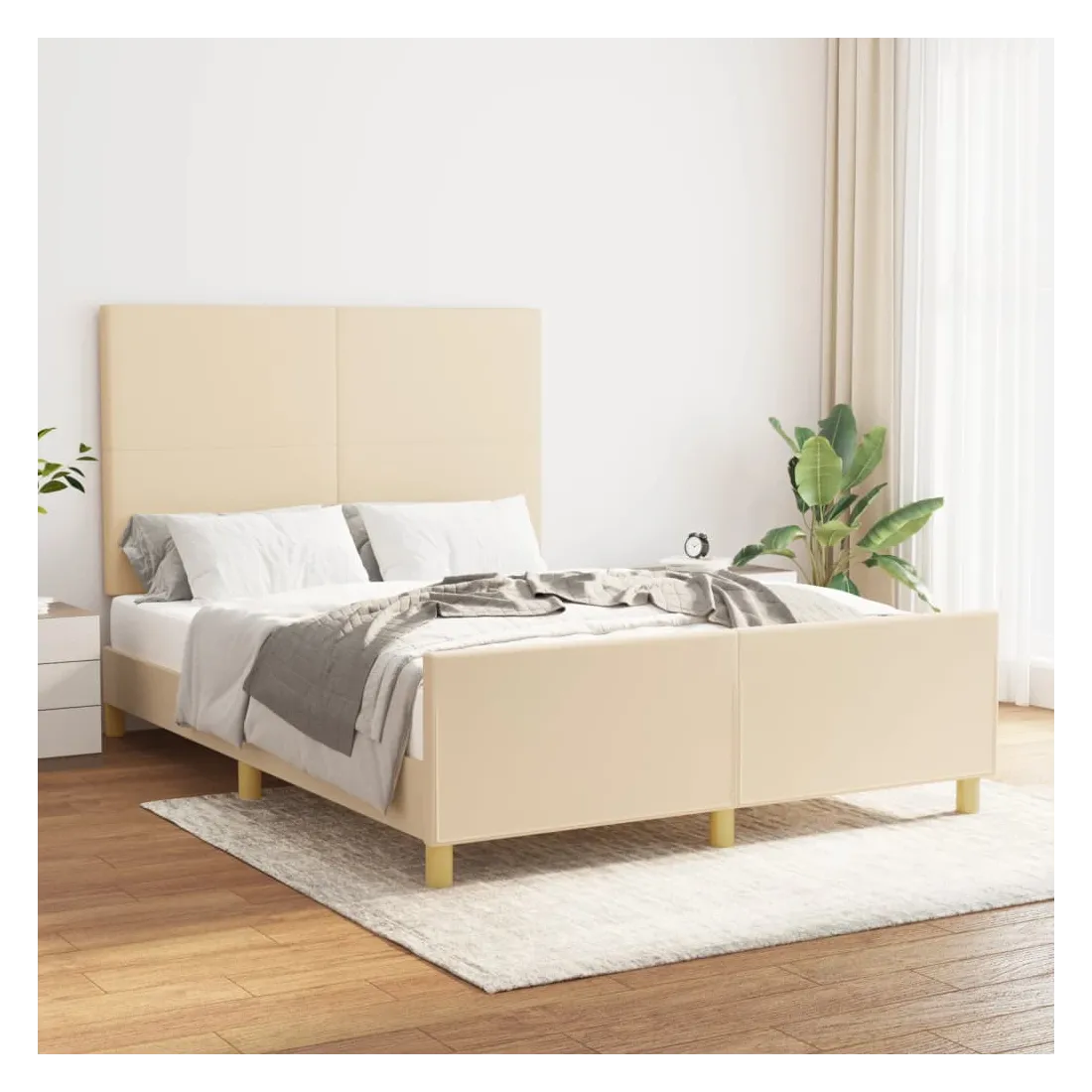 Cadre de lit sans matelas crème 140x190 cm tissu