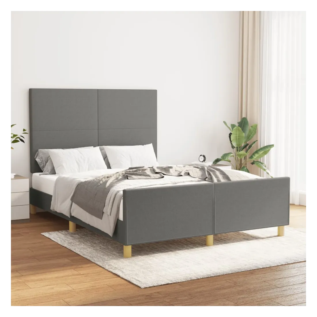 Obtenez une meilleure nuit de sommeil reposante grâce à ce cadre de lit avec tête de lit ! Il est un supplément accueillant à toute chambre à coucher. Tissu durable : le tissu présente un aspect simple et épuré, et il est respirant et durable.Hauteur réglable : la tête de lit est réglable en hauteur selon vos préférences.Pieds de soutien : le lit est soutenu par des pieds robustes, qui assurent sa stabilité, sa sécurité et sa fermeté.Lattes de contreplaqué : les lattes de contreplaqué assurent une bonne répartition du poids, garantissant que le matelas reste en place à chaque torsion de votre corps pendant le sommeil.Excellent soutien : la tête de lit vous offre un excellent soutien du dos lorsque vous êtes assis dans votre lit pour lire ou regarder la télévision. Remarque :La livraison comprend uniquement un cadre de lit. Le matelas n'est pas inclus. Vous pouvez consulter notre boutique pour trouver les matelas assortis.Chaque produit est livré avec un manuel de montage dans la boîte pour un montage facile.