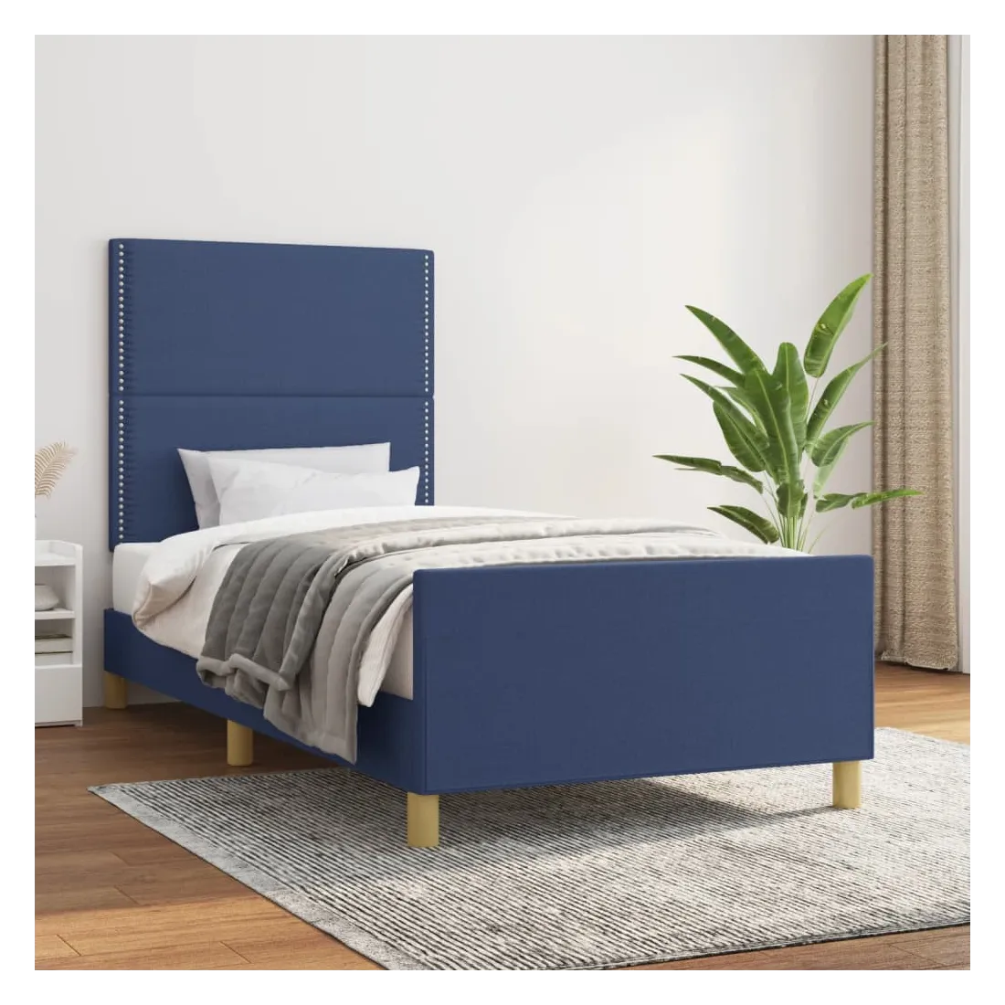 Cadre de lit sans matelas bleu 90x200 cm tissu