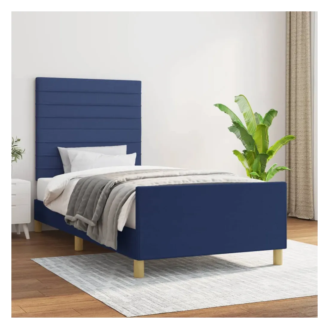 Cadre de lit sans matelas bleu 90x190 cm tissu