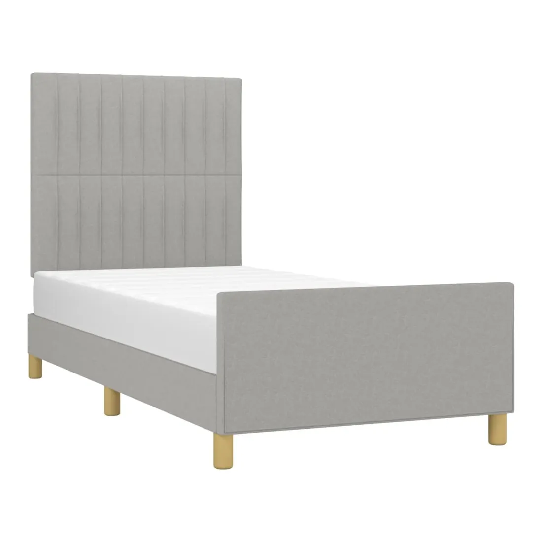 Obtenez une meilleure nuit de sommeil reposante grâce à ce cadre de lit avec tête de lit ! Il est un supplément accueillant à toute chambre à coucher. Tissu durable : le tissu présente un aspect simple et épuré, et il est respirant et durable.Hauteur réglable : la tête de lit est réglable en hauteur selon vos préférences.Pieds de soutien : le lit est soutenu par des pieds robustes, qui assurent sa stabilité, sa sécurité et sa fermeté.Lattes de contreplaqué : les lattes de contreplaqué assurent une bonne répartition du poids, garantissant que le matelas reste en place à chaque torsion de votre corps pendant le sommeil.Excellent soutien : la tête de lit vous offre un excellent soutien du dos lorsque vous êtes assis dans votre lit pour lire ou regarder la télévision. Remarque :La livraison comprend uniquement un cadre de lit. Le matelas n'est pas inclus. Vous pouvez consulter notre boutique pour trouver les matelas assortis.Chaque produit est livré avec un manuel de montage dans la boîte pour un montage facile.