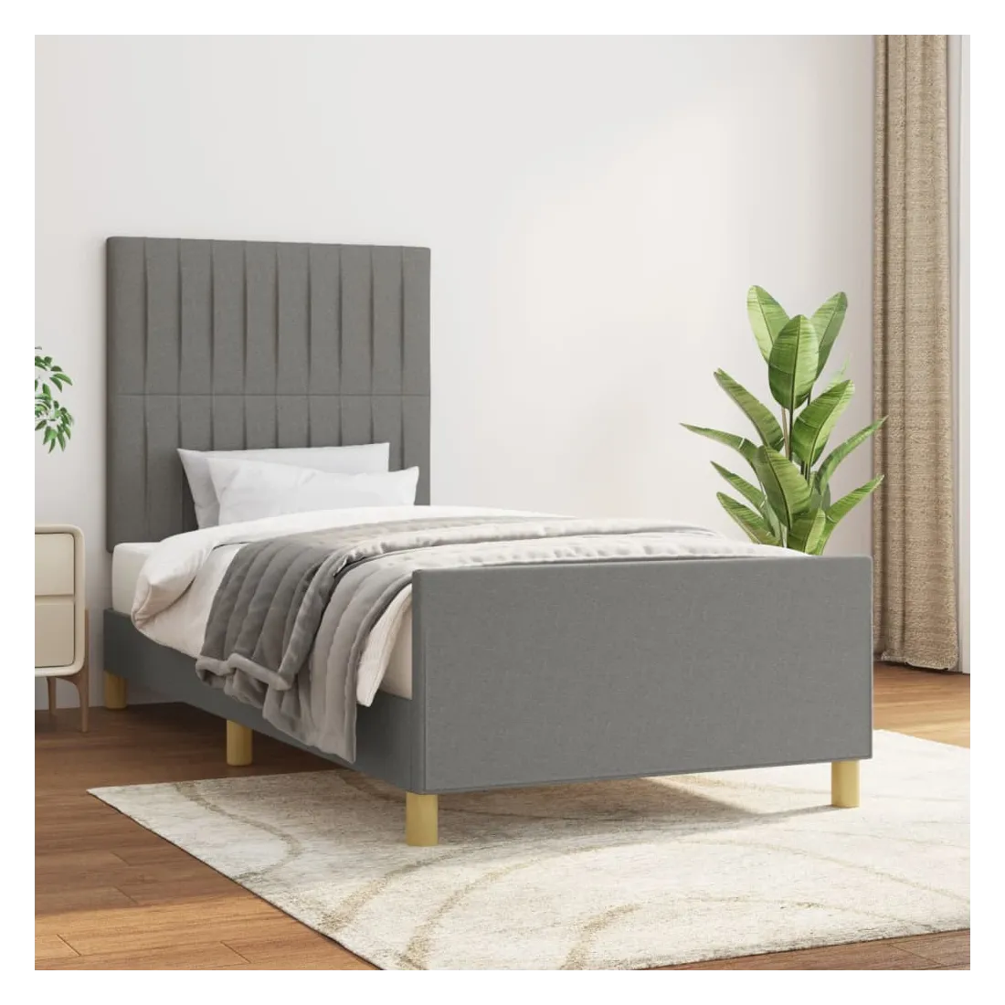 Cadre de lit sans matelas gris foncé 90x190 cm tissu